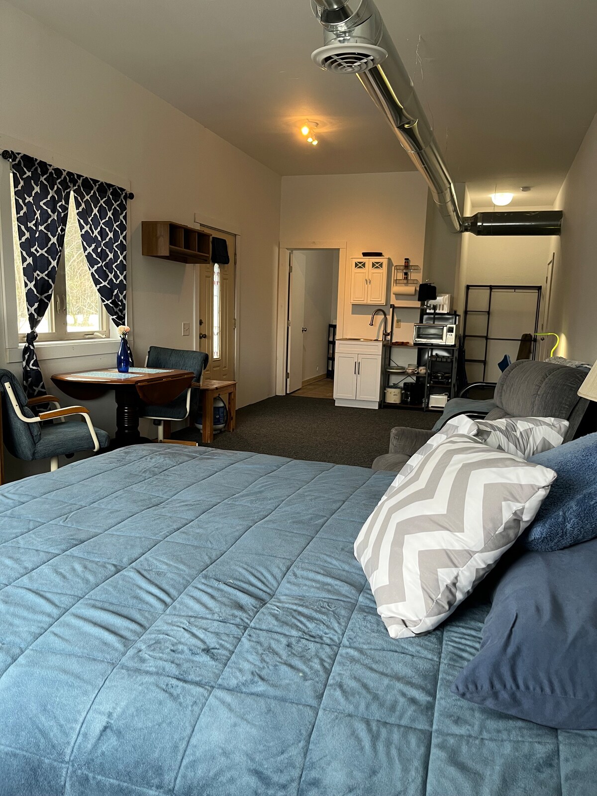 Each apartment has a fully furnished kitchen, spacious living area, and private bathroom. There is a coin-op laundry on the main floor shared with other guests and the RV park. A BBQ grill and outside patio is shared by the RV park next door. NOTE: the BBQ is not available October to April