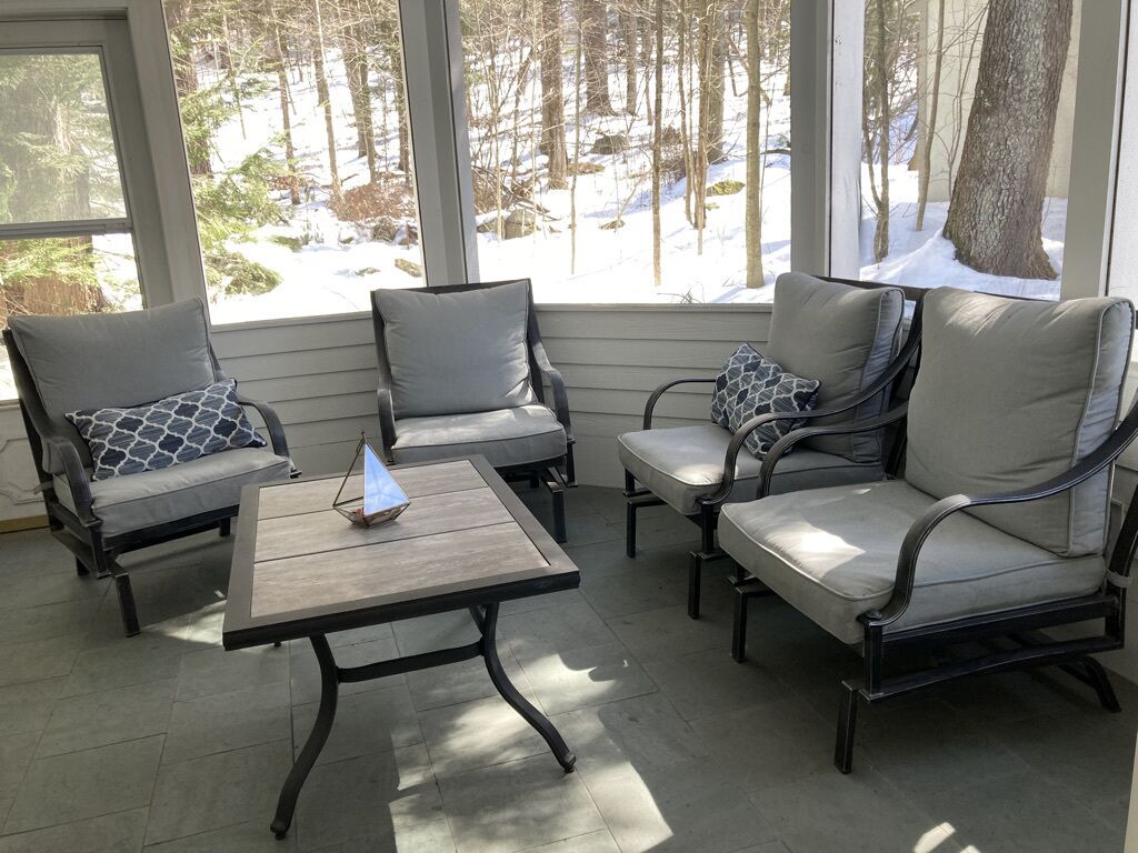Or, relax here and enjoy a complete vacation! Go swimming or boating in the pond, or catch frogs; pick wild berries and hike; the Appalachian Mountain Trail abuts our property to the north. Open the French doors that run across the length of the back/view side of the house and enjoy cooking on the barbecue and dine while taking in the view of the complete Upper Valley from the 2000 square foot deck. You can follow the Connecticut River for miles! In fall or winter, wear if it's not too cold, wear your light jackets or sweaters and dine on the cozy winter/summer porch where you may see a deer or two munching on the fruit left on the ground from the summer harvest!
