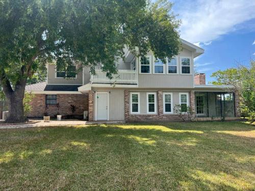 Bienvenido a la casa de la relajacion, which means welcome to the house to relaxation in spanish. Enjoy this large 5200 sq.ft. open concept home in Harlingen Texas with private heated pool 8 feet deep with waterfall. The Home features 4 bedrooms and 3.5 bathrooms and sleeps 16 very nicely. Enjoy the costal nautical design with 3 large living rooms and formal dining room, a pool table, poker table, media room, gym and a private back yard. House only 45 minutes from south padre island. House is also ideal for business travelers that are looking for large work spaces. Surveillance ring camera and arlo cameras are located on pool area of property.