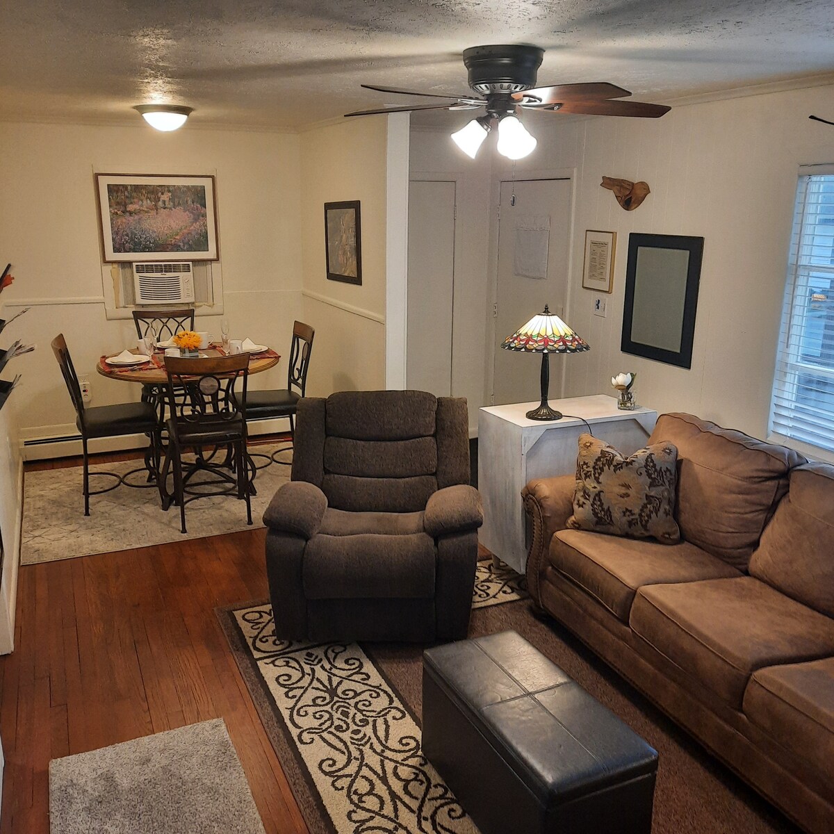 - "This is the 2nd time we stayed here. Great porch to enjoy your favorite beverage and watch tourists. Property was very clean and enjoyed the lovely town." - "This property is incredible. Great location right across from all the shops and restaurants. Great mix of modern amenities and old-time experience. The interior design is thoughtful and makes for a cozy stay. Jill was very helpful and communicative. The front porch is very comfortable and relaxing. If you are sensitive to noise (which we are not) there is a train line that runs within ear shot of the property. We found it charming, and our daughter loved watching the trains go by. Would definitely stay again"