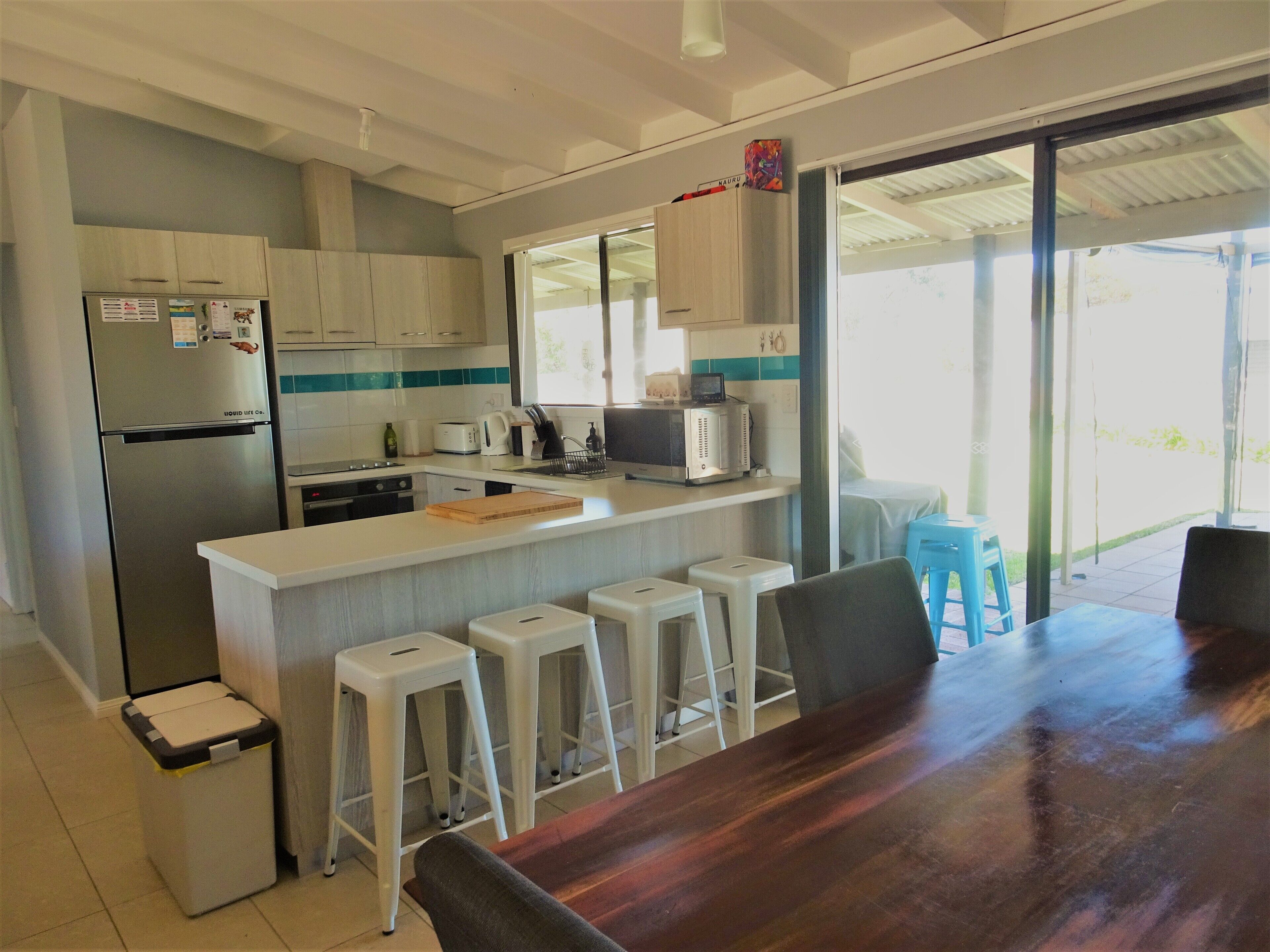 Outside of the house is a very large grassed back yard, great for the kids or fur babies to run around in. The backyard is not fenced though so you will need to bring a lead with you to tie your dog up at night if he/she is coming on holiday with you.