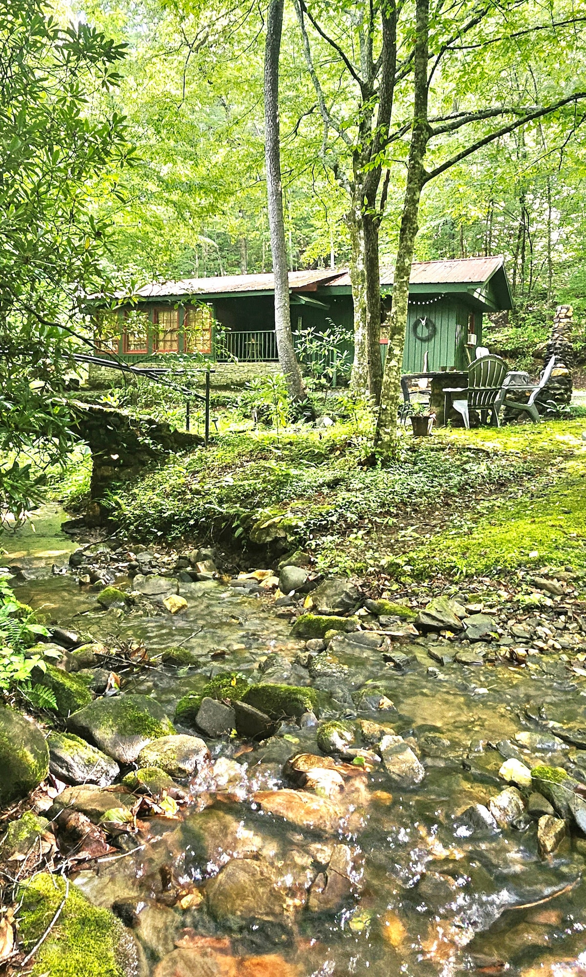 Tranquil creek side home. Enjoy your morning coffee or evening wine on the large screened in porch overlooking the creek. Blooming mountain laurel in the spring, colorful foliage in the fall.