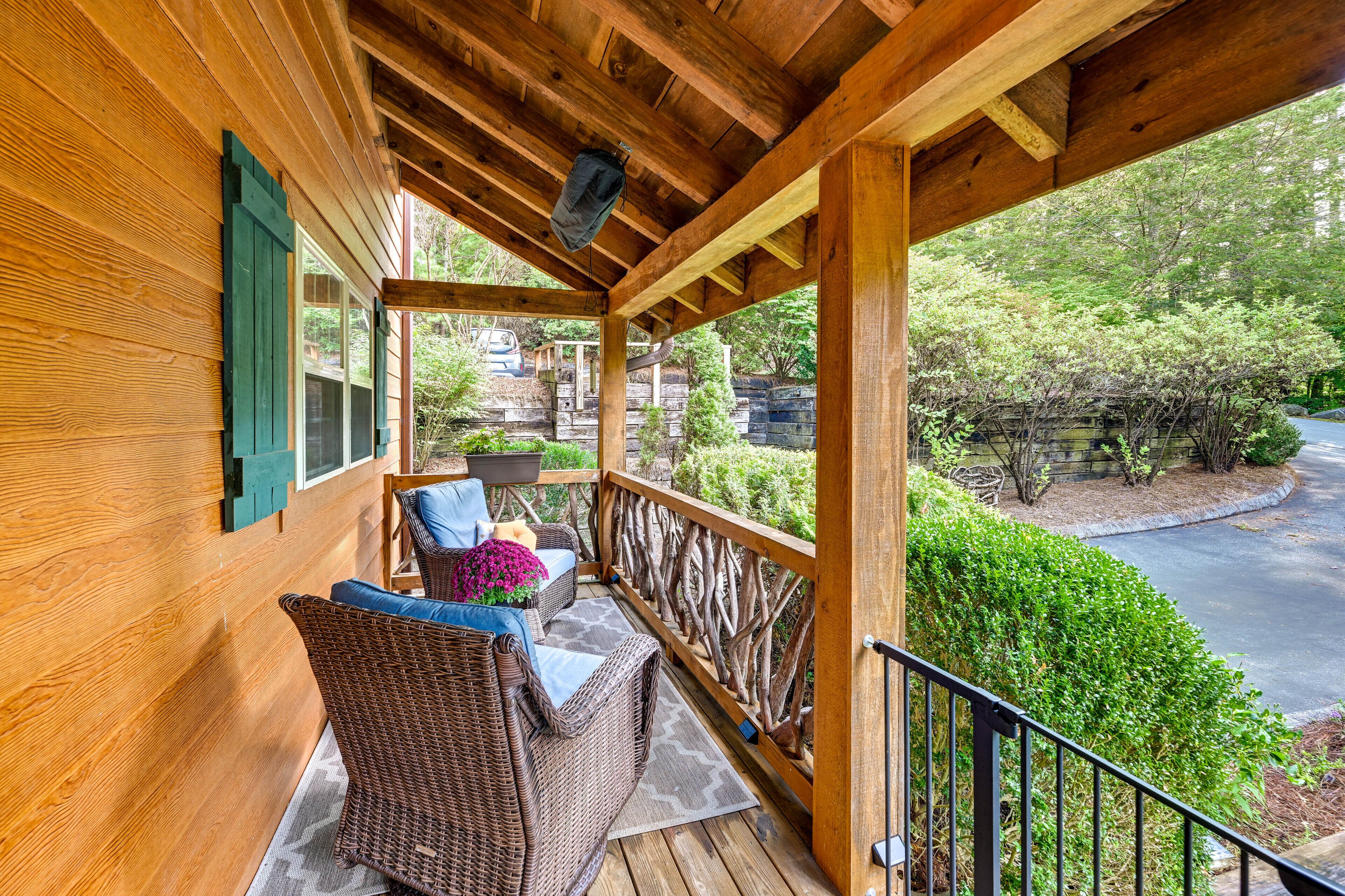 This perfect mountain cabin offers an upscale fully appointed kitchen, sure to delight gourmet chefs, cocktail experts, and appetites. Your kitchen opens to a lovely dining room, which leads to the soaring two story great room, with tongue and groove ceilings and a rustic stone fireplace for those cool Highlands nights. From the great room, step out onto the newly expanded deck with enough room for grilling and dining, as well as a cozy conversation area with a gas fire pit for relaxing with coffee, or a cocktail! A spacious master bedroom with a king size bed, and a fully stocked modern ensuite bathroom, leads to another walkout to the deck. A beautiful second bedroom with a queen size bed and its own nearby full bath, insure the comfort of the main level. The second level adds a large bonus room, queen bed and full bath. Enjoy the 70 inch smart TV which offers over 85 channels on YouTube TV, sports packages, Disney+, and movies galore! This loft is open to the great room and is perfect for an additional living area, sleeping area, and an in-home office if needed. Your perfect mountain getaway is located in the desirable Mirror Lake R2 district, within city limits, and only a few short minutes to bustling Main Street in Highlands. Enjoy strolling and eating your way through this quaint neighborhood or grab your fishing pole or canoe and enjoy the serenity of two nearby lakes and the many waterfalls of the Plateau.