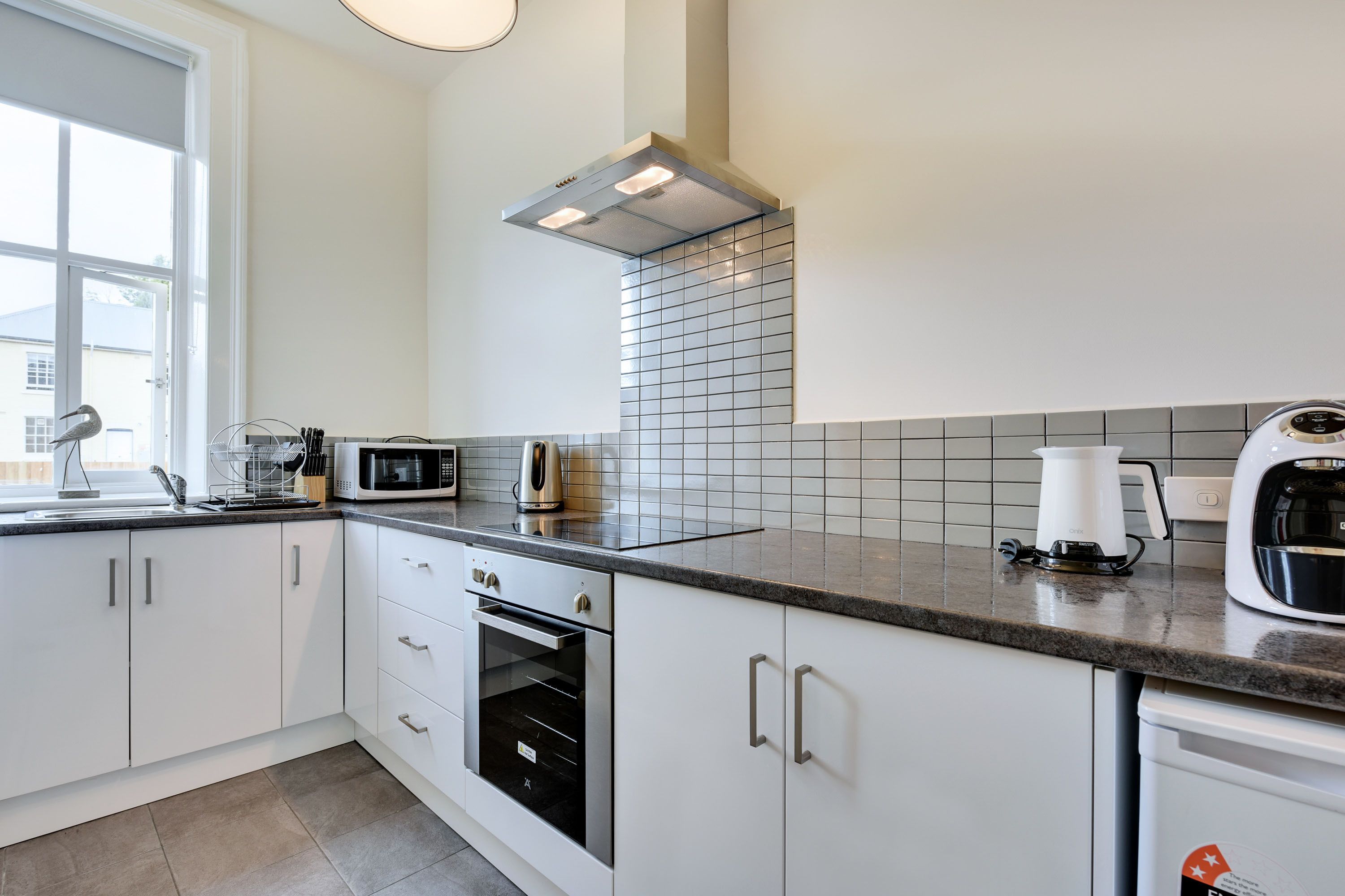 microwave and kettle and a toaster. mini fridge with enough milk for the first 2 nights coffee and tea supplied.