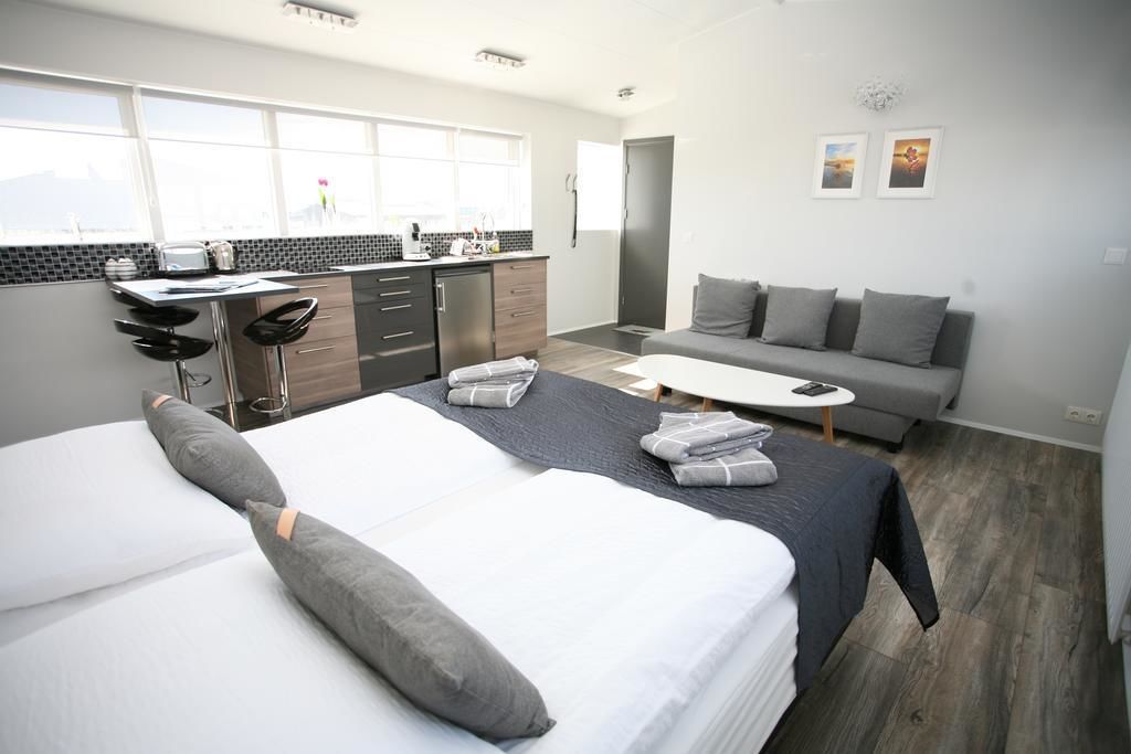 - "This was an excellent and well kept apartment. We were able to eat dinner at Z Bistro just below our apartment. There's Ósland, a park in town where we were able to watch the Northern Lights and enjoy beautiful views. " - "Loved this apartment! So clean and beautiful" - "It is a very good place to stop . the apartment is very spacious very comfortable. Has a lot of amenities. The manager is very nice. Downstairs they have a very good restaurant that has a lot of selection on different foods. I would recommend this place. Important to know is when you’re checking out you should leave the key in the room"