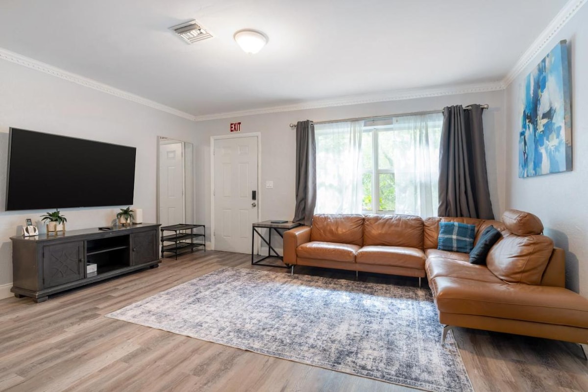 For up to 3 people. Beautiful studio (200 SQF) with 1 bath & Free Parking for 1 car. This is a 5 unit complex. It's just a few minutes drive to Hollywood beach that has a great Boardwalk, downtown Hollywood with plenty of bars & restaurants, Aventura Mall, Hard Rock Casino, Fort Lauderdale airport & seaport. The studio has been completely updated (floors, bathroom, kitchen, impact door) it has: kitchen utensils, linens, key less entry, Wi-Fi, smart TV & Laundry room.