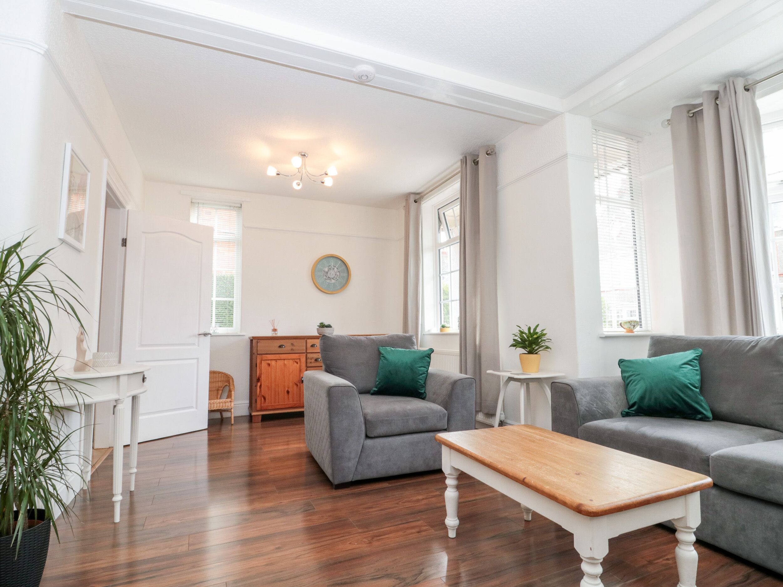 This ground-floor apartment rests in Hornsea, East Yorkshire and can sleep four people in two bedrooms.