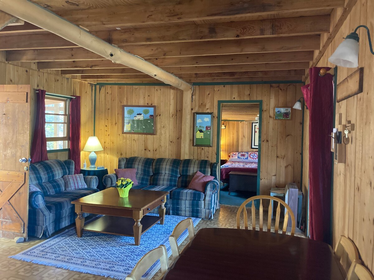 This truly unique hand-crafted cabin with custom hand hewn logs, cedar shakes and old barn wood provides the respite you need. Sleeping accommodations include a king size pillow top bed, a full sleeper sofa in the living area and a beautiful futon made from birch wood.
