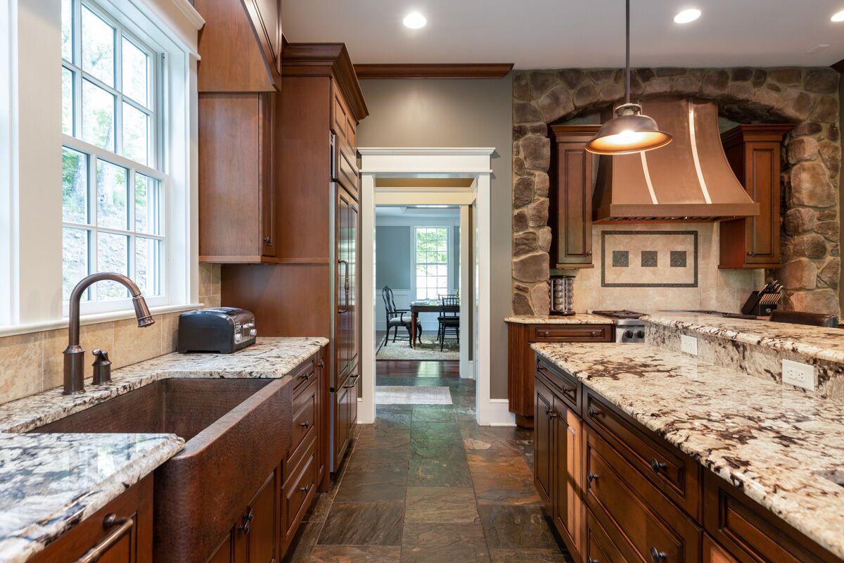 -Gourmet fully stocked kitchen w/ double oven, 2 fireplaces, covered porches