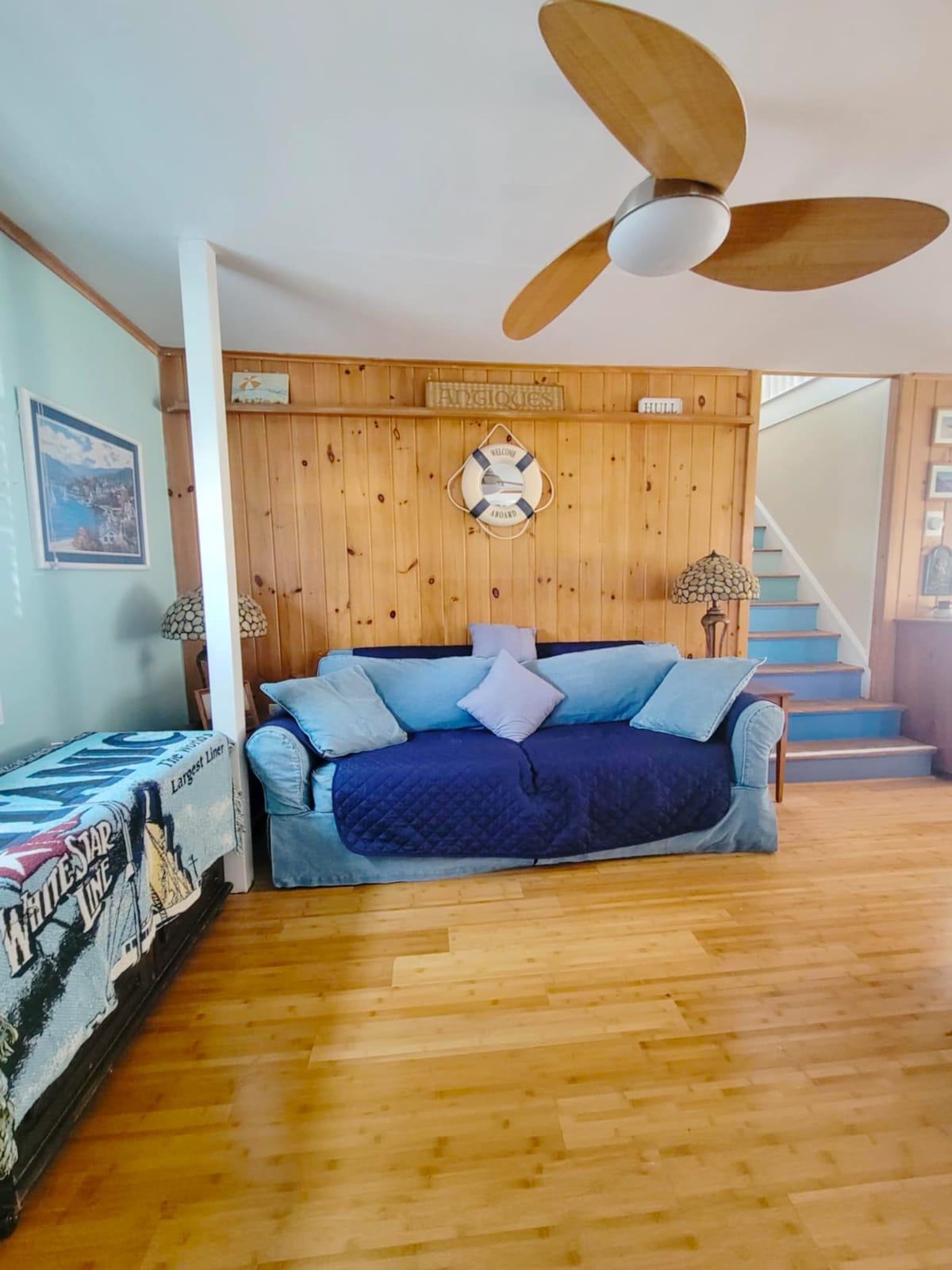 What a find! Our stay at This Old House, even at a time with heat and high humidity, was really enjoyable for our three generational vacation. Yes, the stairs are steep as described, but not a problem for our 70 year old Papa! The warm breezes through all the large, deep windows made for lovely sleeping on our comfortable beds, and amazingly we didn’t miss air conditioning! Neither did we miss the lack of a dishwasher! Having a huge washer/ dryer was really convenient and made for light luggage for our family packing. The house is perfectly situated with lovely views across the pond, access to a rocky beach for scavenging, and 2-minute drive to camp out on the expansive Hull Beach. This Old House is an immaculately kept home of yesteryear offering a truly calming and charming beach experience!