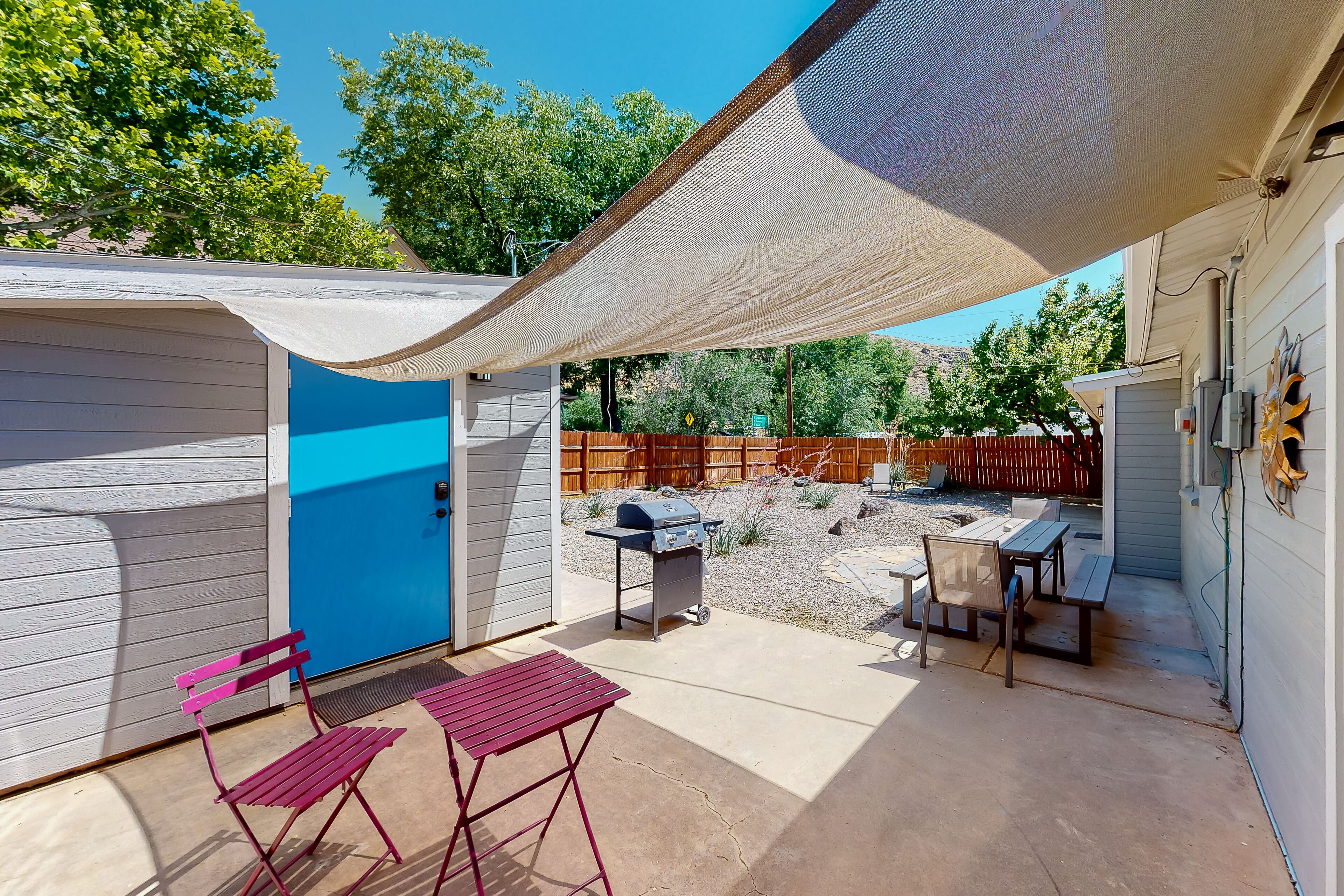 Eating at many of the delicious and tasty restaurants in Hurricane or Zion National Park can be wonderful and fun. Sometimes, a nice home cooked meal is just what we need though, right? That is why we have equipped the Boho kitchen with all the cooking and coffee essentials. You will have everything you need to cook a nice meal inside on a table top burner or out on the deck with the large grill.