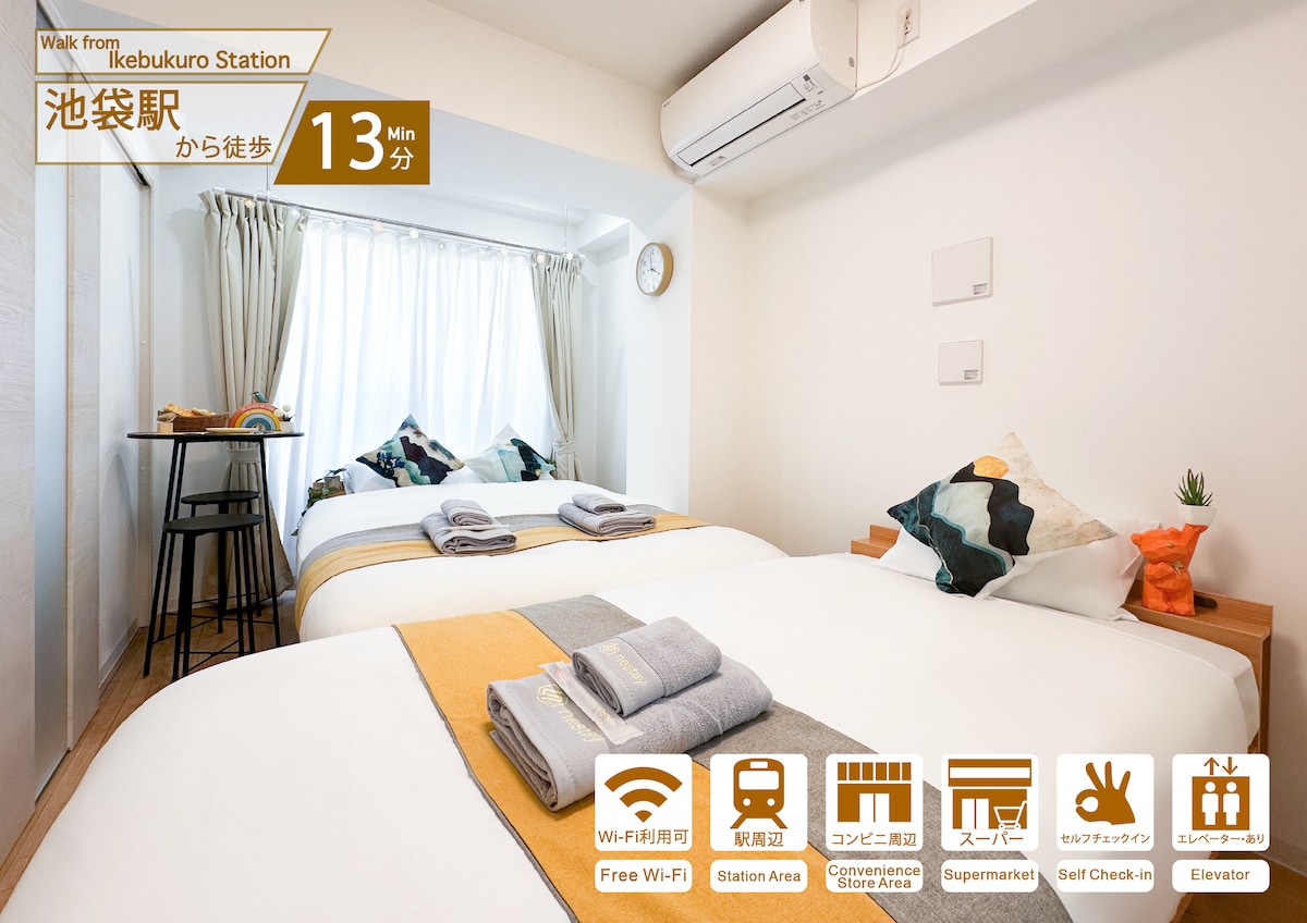 Perfect for solo, solo travelers, couples and friends, we're here to make your stay comfortable and convenient.The location is a 9-minute walk from Ikebukuro Station, with excellent access to major tourist spots and business areas such as Shinjuku, Shibuya, Ueno, Tokyo, etc.There is a convenience store 1 minute on foot and a supermarket 5 minutes on foot, making it convenient for everyday life.We also have laundry so you can rest assured that you can stay for a long period of time.Enjoy a relaxing moment in a tranquil and tranquil space.