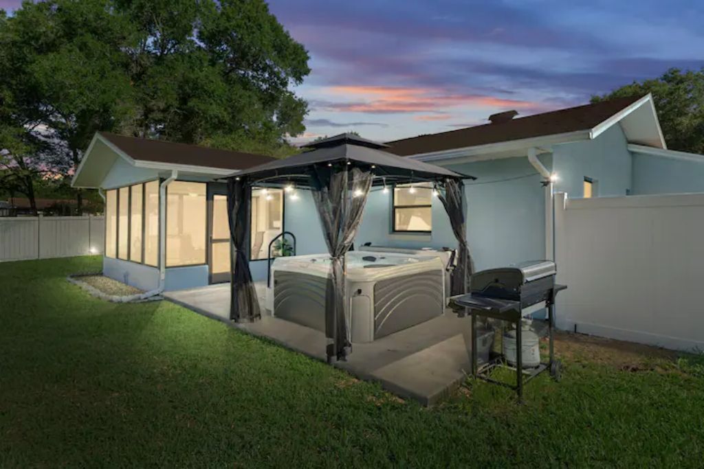 - "Located near the end of a cul de sac in a quiet wooded neighborhood. I rarely saw or heard any of the neighbors, and felt very private. The owner did a great job thinking of vacation renters typical needs. We were able to get to all the local attractions in forty five minutes or less, and then return for a leisurely swim. Even though the weather didn’t fully cooperate, we saw lots of manatees and swam in ice cold springs." - "Absolutely perfect! Extremely clean, we had everything we needed, felt safe and the location was perfect. The furniture and beds were good quality, and comfortable. We spent every morning eating breakfast on the lanai and enjoying the beauty of the backyard. So much place! and the pool was incredible. We sat outside by the pool under a covered porch that had a ceiling fan, nice table and comfortable chairs every day. Another feature we loved was the attached garage for easy in/out access with our rental car. Very convenient to shopping and other activities in area. This was our 2nd time staying here.. we highly recommend."