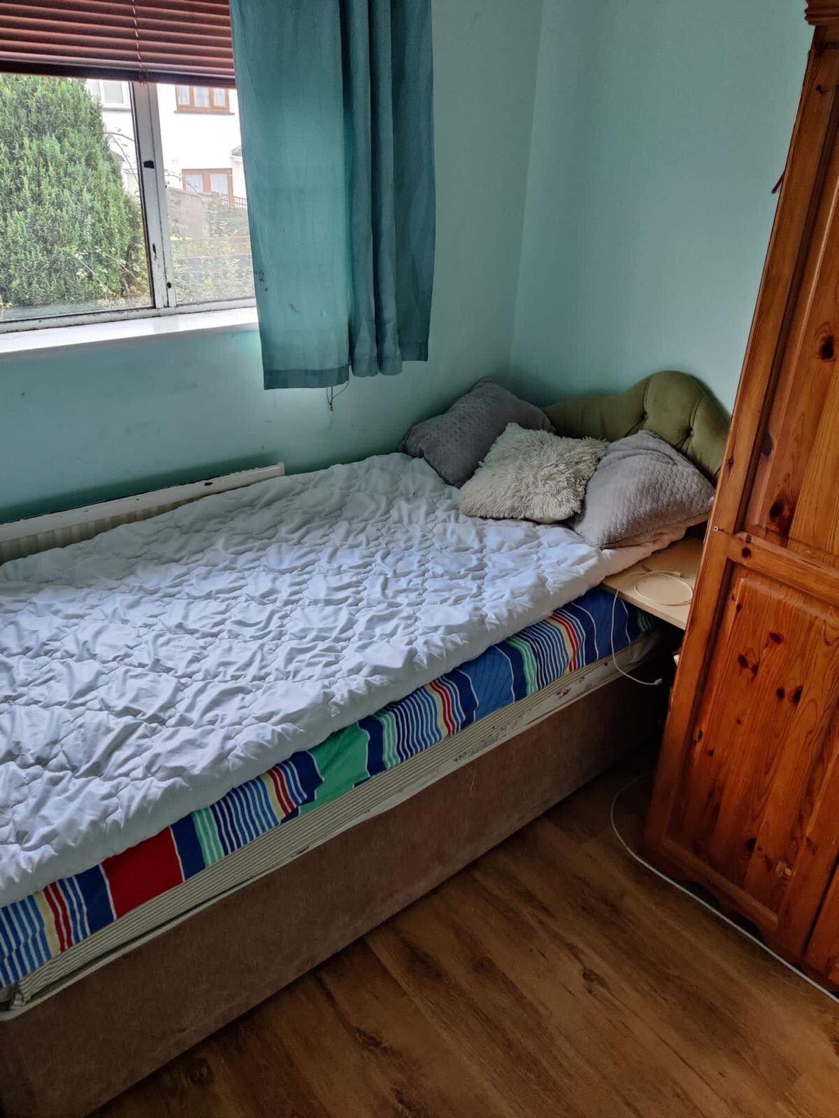 We offer a small, bright and comfortable single room. The room has ample storage, multiple electrical outlets and a desk on wheels which one can manoeuvre whilst sitting on the bed! You also have access to a shared bathroom on the ground floor.
