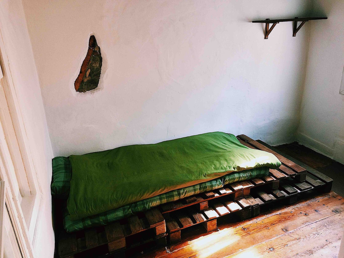 For reservations for 3 people, 1 double bed and 1 single air mattress are provided.
