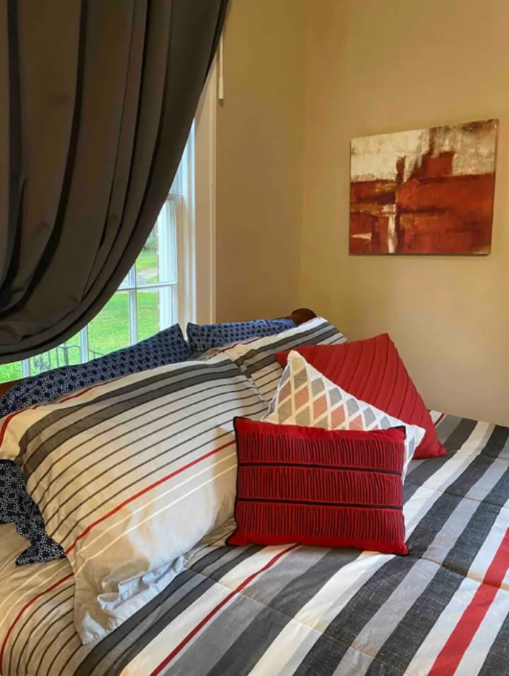 - Furnished with fresh linens, exchangeable duvet covers, throw pillow covers, couch & chair covers which are changed out between guest.