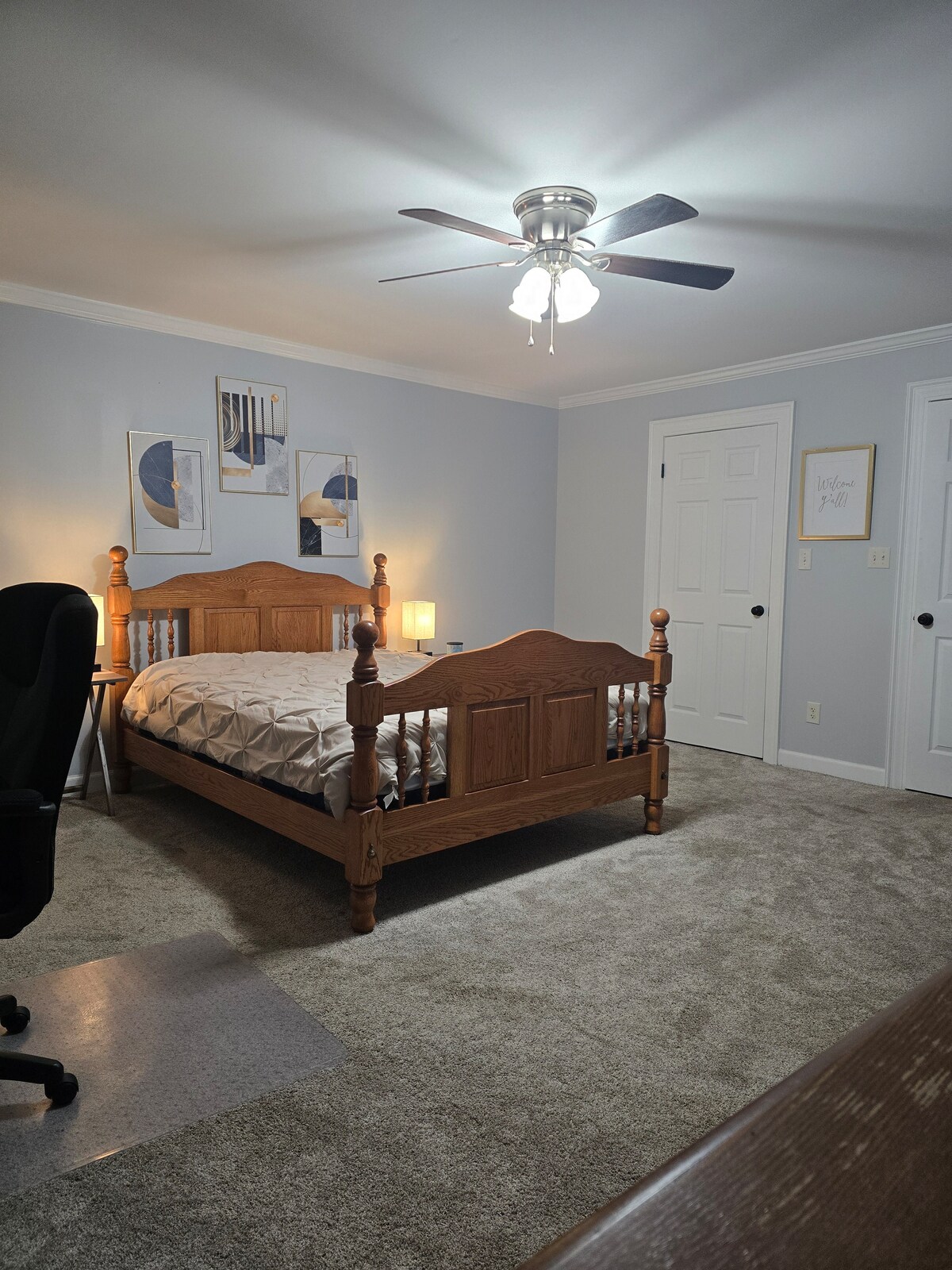 A cozy house with 4 bedrooms and 2 full bathrooms. A minute from everything, beautiful patio can relax morning cups of coffee, living room has 75in tivi,big master bedroom and bathroom , parking can be 4-5 vehicles and a lot more,,,