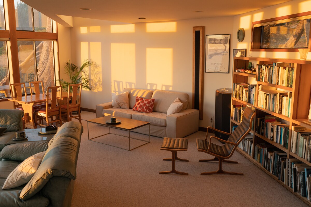 For dusk/evening glamour and a change of mood…The Neon Fish vintage art piece fills the living room with a pink glow. Stargazing is incredible and the moon on the Sonoma Coast is beyond beautiful without any light pollution from the surrounding area.