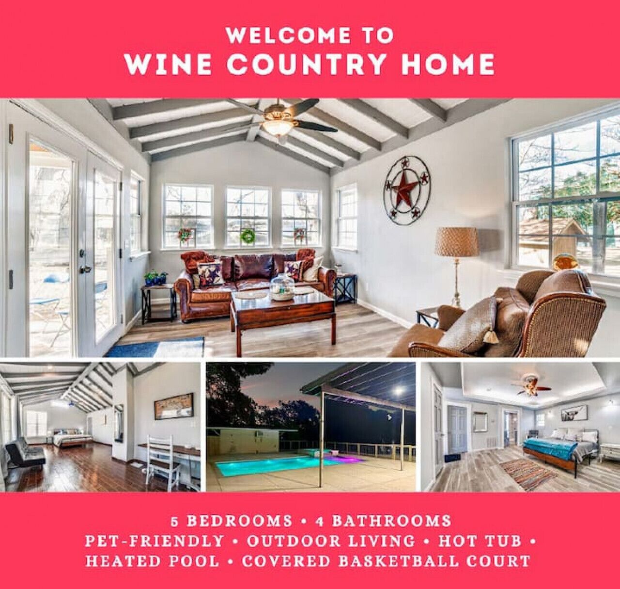 - "Beautiful property and very accommodating hosts. They checked on us several times during our stay to make sure we had an" - "The kids say they want this house for next year also." - "lovely home and lovely experience" - "Large flexible home in good location near wineries and LBJ ranch"