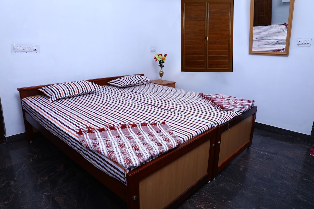 Treat yourself to a stress-free stay Ben's Villa Kannur.Our home is located just off Kannur City and Kannur International Airport,an easy drive from Kannur International Airport and Kannur Railway station, making us the ideal destination for both business and leisure travel. Travellers driving from Cochin or Mangalore have an easy access to take a break and make a stay over for their long day of driving.Our rooms are air-conditioned featuring free Wi-Fi,32-inch HD Smart TV, Attached Bathroom.