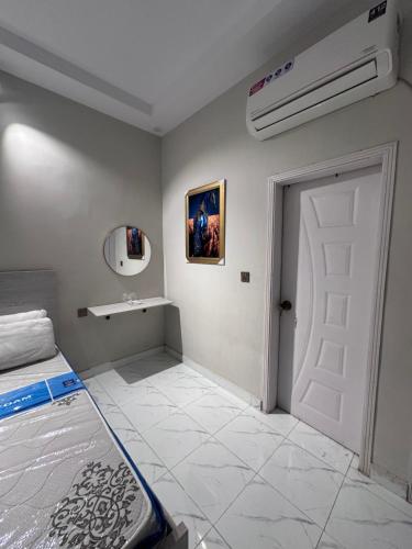 One Room with King Bed and small bathroom. Big Windows which give a feeling of spacious place having balcony.