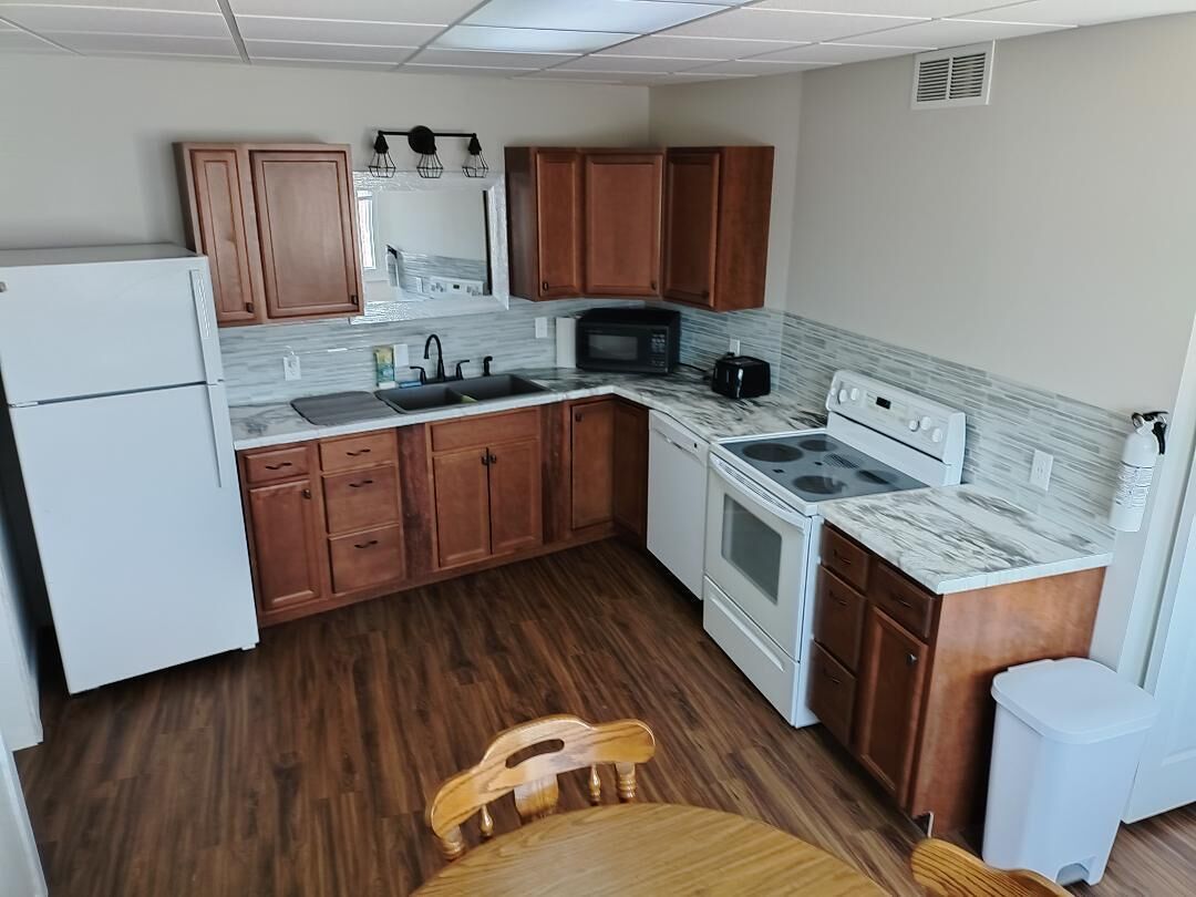These newly-renovated, modern executive suites are perfect for your business stay in Minden. You'll love your time in downtown Minden with the amenities of a great motel and the comforts of a cozy home. Relax by the fireplace, unwind, or cook your favorite meal in our spacious, fully-equipped kitchen. High speed internet, private locked rooms, security system. SUITE #3 INCLUDES: 1 queen & 1 full bed with private bath. FAMILIES: rent one, two or all three rooms (see Wheelhouse listing #1 and #2).
