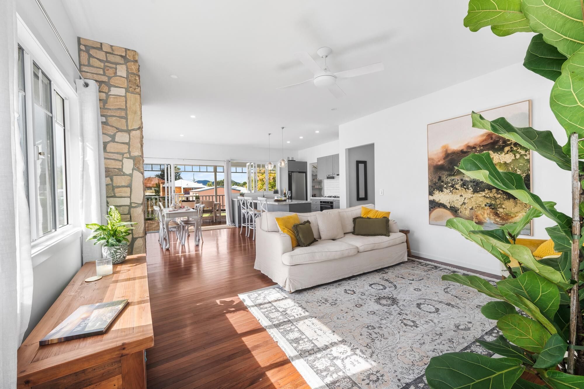 Step inside The Farm and be welcomed by an expansive, open-plan lounge, dining, and kitchen area that has been meticulously designed for relaxation and comfort.