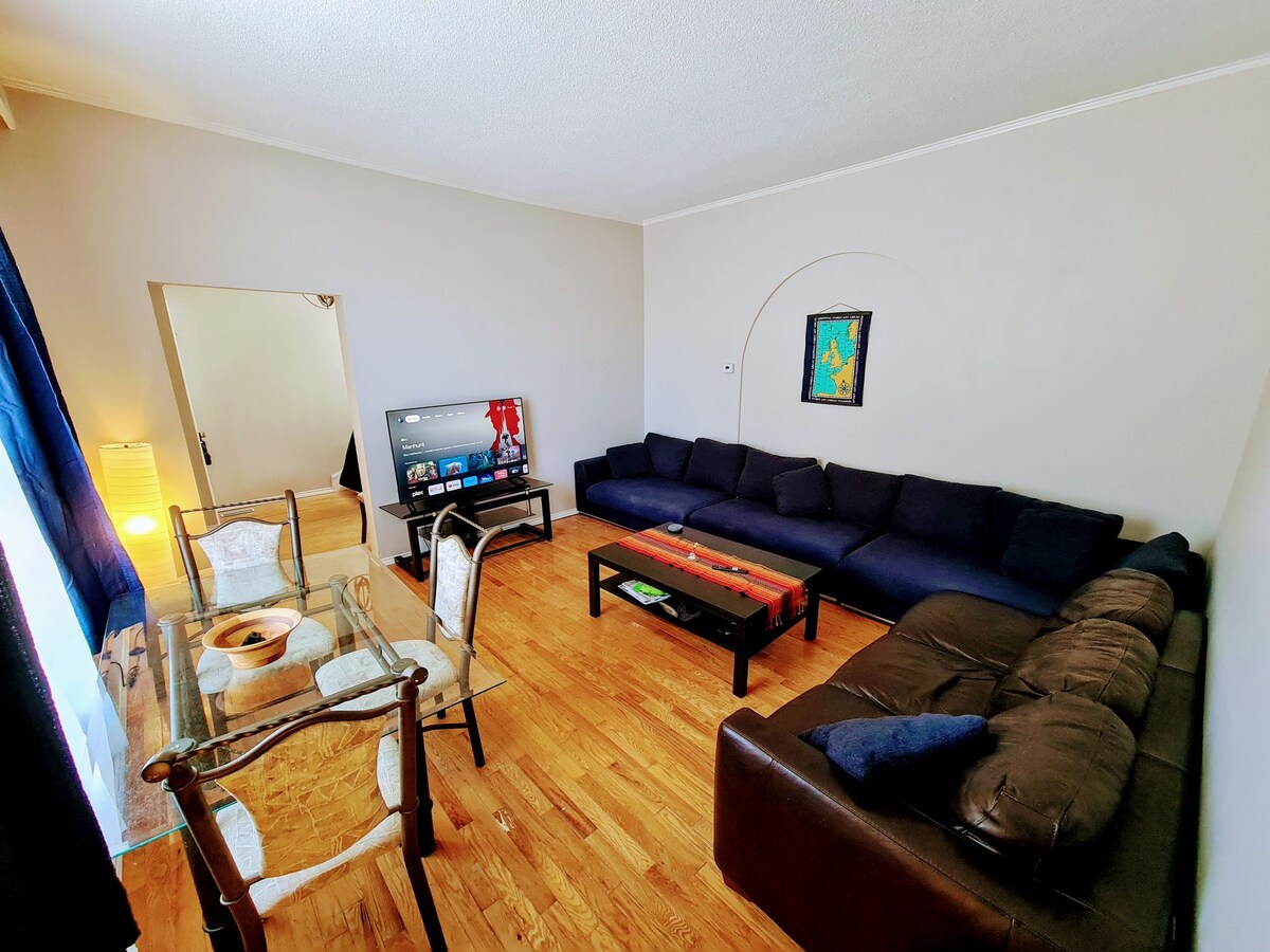 Surround yourself with style in this standout space. Newly renovated, modern suite with everything you need to relax and enjoy! Fully furnished, well equipped, including full kitchen, bath, laundry, wifi, tv, electric fireplace, central air and 1 parking space. 1 private bedroom with a queen bed, plus a small sofa bed in the living area. Have an electric vehicle? No need to worry about where to charge. There’s an EV charger onsite, free of charge!
