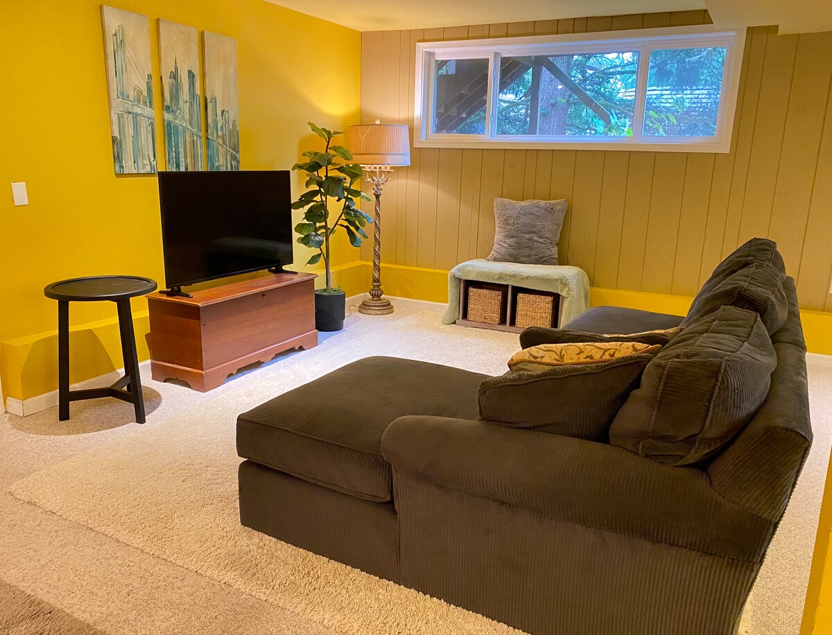 Living Room: The guest will have exclusive use of the downstairs living room with a 50" Smart Fire TV and occasional appearances by the Host and/or family members on laundry days (usually twice a week).