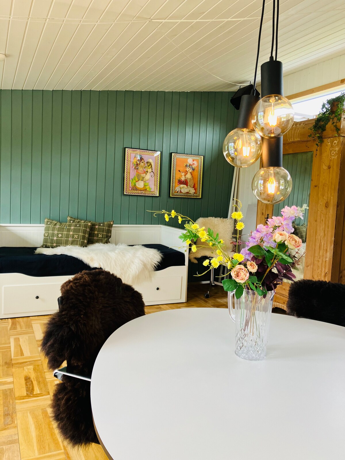 Welcome to a special house in a spectacular garden. The flat is 33 sq m with three beds. Private bathroom.