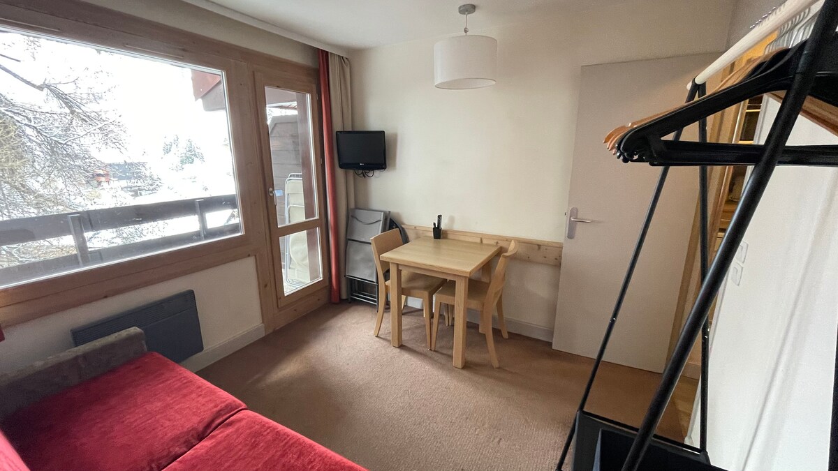I welcome you to this warm 25 m2 apartment in La Plagne Soleil, for a stay of 4/5 people. Consisting of a bedroom, a cabin area with 3 bunk beds, a fully equipped kitchen with dishwasher, a spacious shower room, a separate toilet, a lounge area with a sofa bed and TV , a balcony overlooking the mountain , a ski locker.