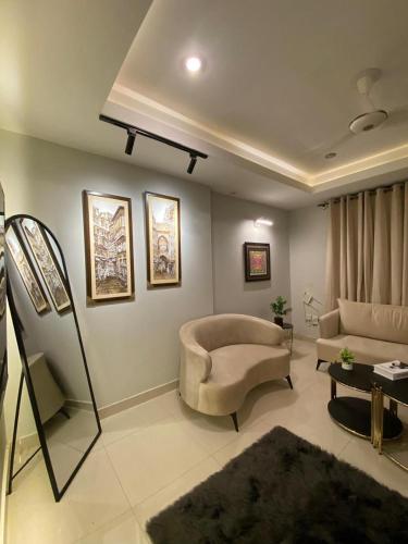 Luxury Apartment with Balcony in Gold Crest, DHA - Skyview Suite is located in Lahore, just 18 miles from Wagah Border and 3 miles from Packages Mall. This property offers access to a balcony, free private parking, and free Wifi. Outdoor seating is also available at the apartment. Featuring a terrace and city views, the spacious apartment includes 1 bedroom, a living room, satellite flat-screen TV, an equipped kitchen, and 2 bathrooms with a bidet and an a bath or shower. Towels and bed linen are available in the apartment. The accommodation is non-smoking. Gaddafi Stadium is 6.5 miles from Luxury Apartment with Balcony in Gold Crest, DHA - Skyview Suite, while Army Museum Lahore is 6.7 miles from the property. The nearest airport is Allama Iqbal International Airport, 5 miles from the accommodation.