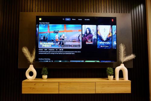 • Spacious Living: Modern decor, comfy sofa, flat-screen TV, high-speed Wi-Fi