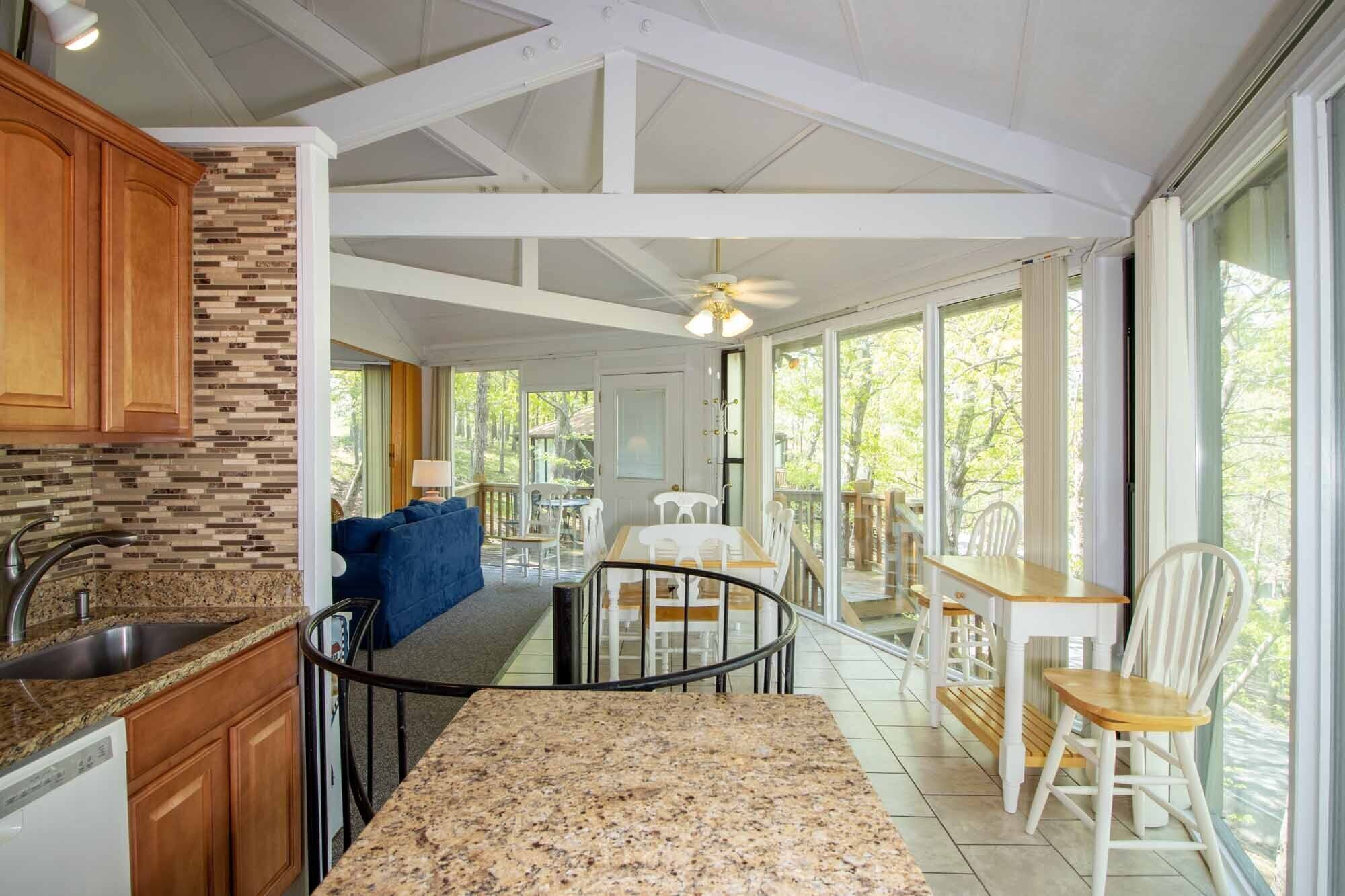 Tree Top Village is located on Horseshoe Bend/Lake Ozark and by water at the 12.5 mile marker next to the Four Seasons Cove Golf Course and is also close to restaurants, attractions and shopping including the 80 store outlet mall. There are no elevators on the property. This unit has 2 walkways to the unit.