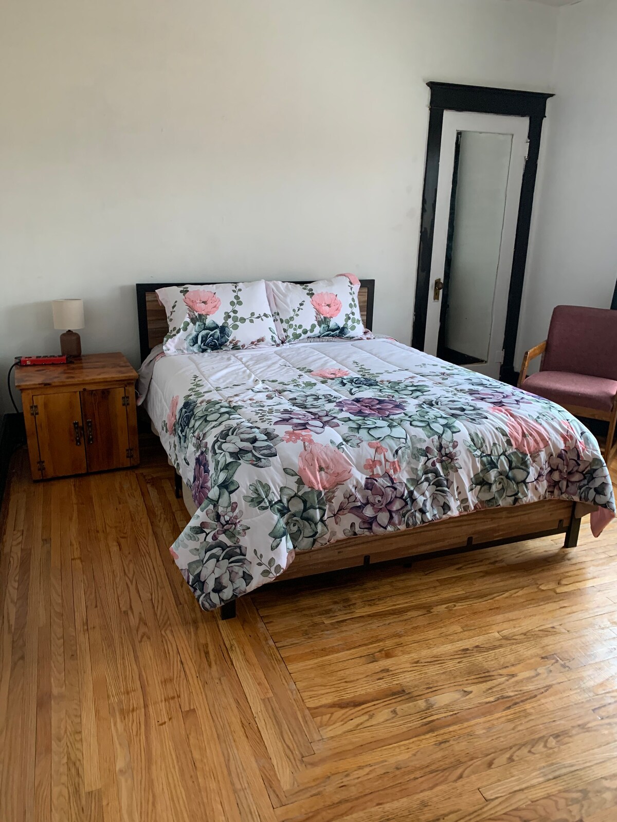 We are excited to share with you our renovated garage studio apartment. Once an old garage, this unique space shows off the brick exterior walls and the old heat system and all of its metal piping. Brand new kitchen, equipped with a full size oven, fridge and dishwasher. Pots, pans, cookware, and dishes are all provided. Cozy up by the gas fireplace. The bed is a queen size memory foam mattress. There is a loading zone next to it. Parking for the building is all street parking around the area.