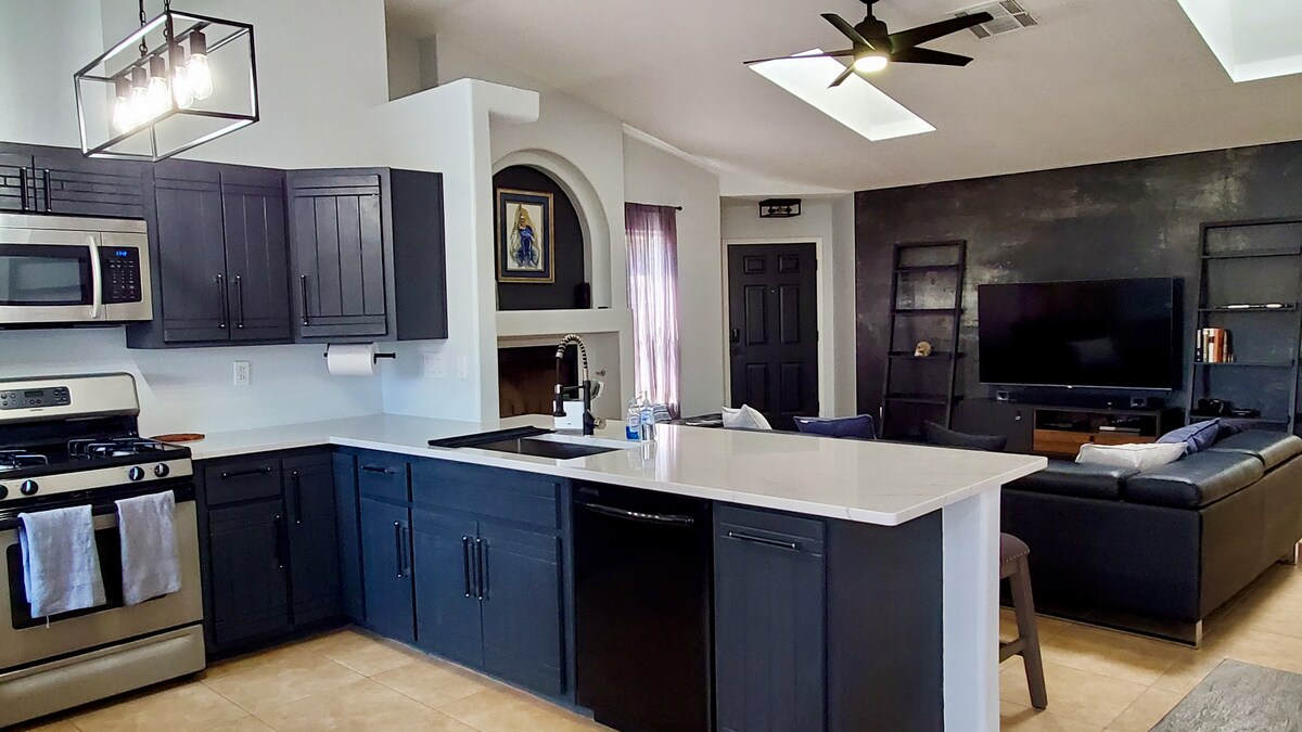 - "The large open area of the kitchen to living space is perfect for feeding people and having space to sit and visit. We really enjoyed our time together in Las Cruces and this house helped make things possible. The location is close to shopping and services. We needed to go to the University and the Convention Center and found travel easy from our location. Thanks for keeping this property available!" - "From the moment we arrived, we fell in love with this expansive home. Its spacious living room and bedrooms and well-appointed kitchen made staying 'home' a true pleasure. The office made a perfect quiet place for sewing. The neighborhood was also quiet and just a short drive to shopping for groceries and exploring the many museums and parks of Las Cruces -- with one lovely community park just a few blocks away for our daily walk. We did have friends visit for 3 of the 6 weeks we stayed here; having three bathrooms gave them privacy and the beds were quite comfortable. My favorite sight was sunrise and sunset of the Organ Mountains, viewed from the dining room. Truly, we're looking forward to returning one day. Julia was an exceptional host!"