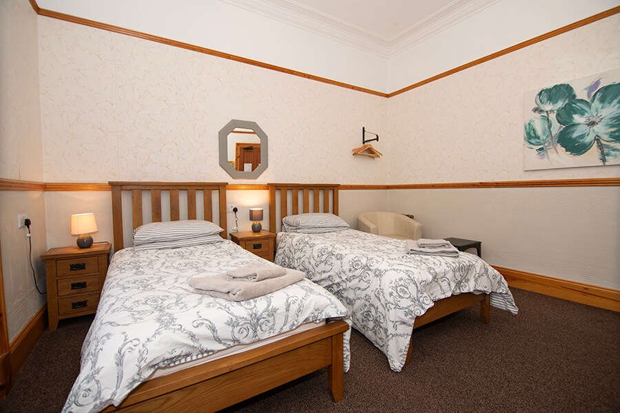This listing is for one twin room on the first floor with en suite bathroom. Room 3 of 12. This room has two single beds