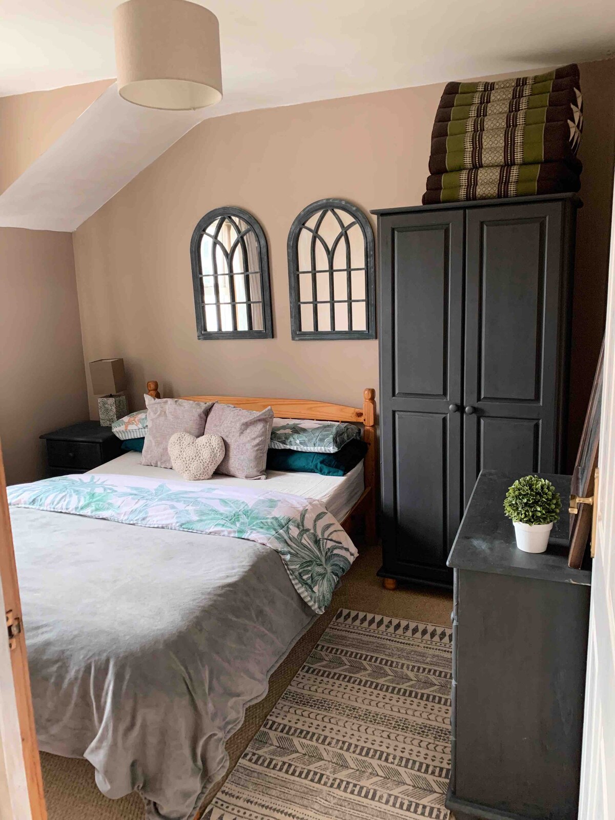 Room 2 has a double bed and access to the main bathroom