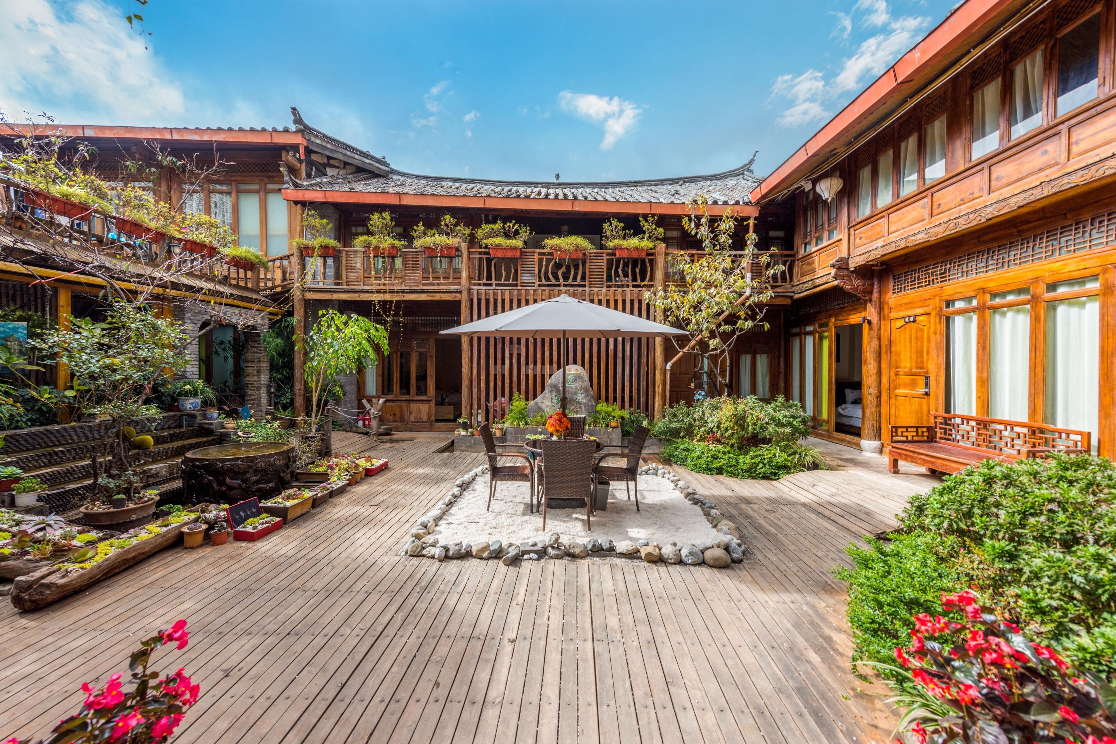 - "This is a fantastic inn, a great and affordable hotel, perfectly located within the old town, so you walk around to major sightseeing. The hotel is comfortable, clean, and the hosts are amazing, they picked me from the airport, and made every effort for me to be comfortable. Excellent option in Lijiang!" - "This beautiful little hotel is built around a small courtyard that gives the feeling of a traditional Chinese home, with beautiful old woodwork and lattice bannisters and windows. The rooms are spacious and the beds comfortable, and the bathroom is large, with a self-flushing toilet. While the building is not soundproof, it is quiet at night. The ‘extras’ in this hotel include a nice deck for guests to sit and enjoy the wonderful container-garden with flowers and succulents. There is also a washing machine and racks, so travellers can wash their clothes without extra cost. The host is extremely helpful and offers free pickup from train station or airport as well as drop-off. Breakfast vouchers are for a Chinese buffet a few meters down the road; (another hotel cafe across the street offers espresso coffees.) Note: the Expedia map is a bit ‘off’: this hotel is located within the Ancient City, which is car-free, so luggage must be walked or rolled across old cobble stones for quite a distance, but the host is very helpful with this."