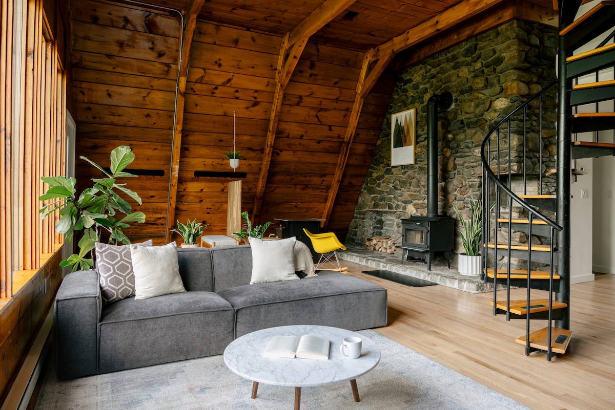 To access the two bedrooms upstairs, guests will use the spiral staircase, a charming feature that adds a touch of rustic character to the home. The staircase is slightly steeper than standard stairs, so we recommend supervising young children while they’re using it.