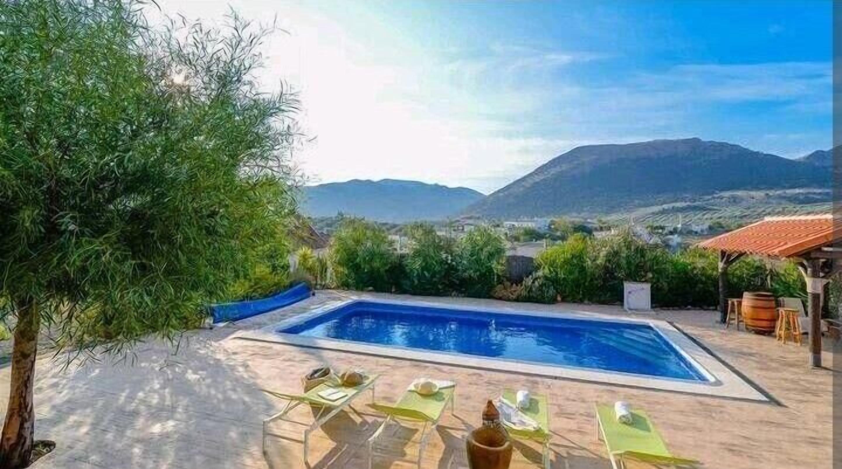 The house is equipped with bath and bed linen. The house and pool are NOT shared, the enjoyment of both is strictly private.