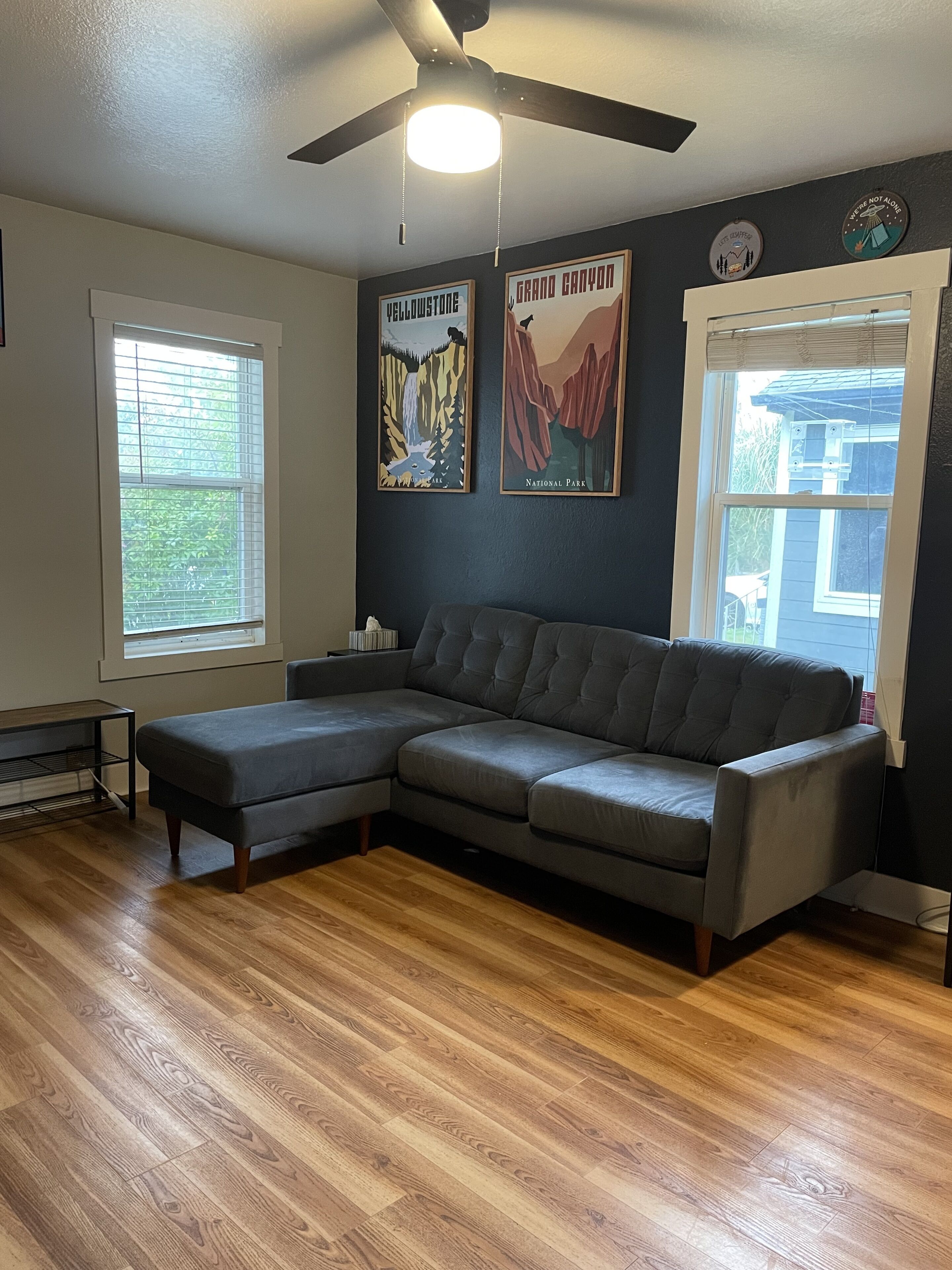 The Bottorff Bungalow has outdoor seating on a peaceful covered patio, complete with propane fire pit! You are close to all things, including restaurants, local riverside park, and easy access to the freeway. Creek runs right next to space, with 6 ft fence for additional privacy. The space is BRAND NEW with delightful amenities like a top-of-the-line water filtration system, sauna with Bluetooth options, Italian leather sectional, games, luggage racks and level 2 EV charger. We are located on the same property so we are available to solve any problems or issues. This is a NON-SMOKING PROPERTY.