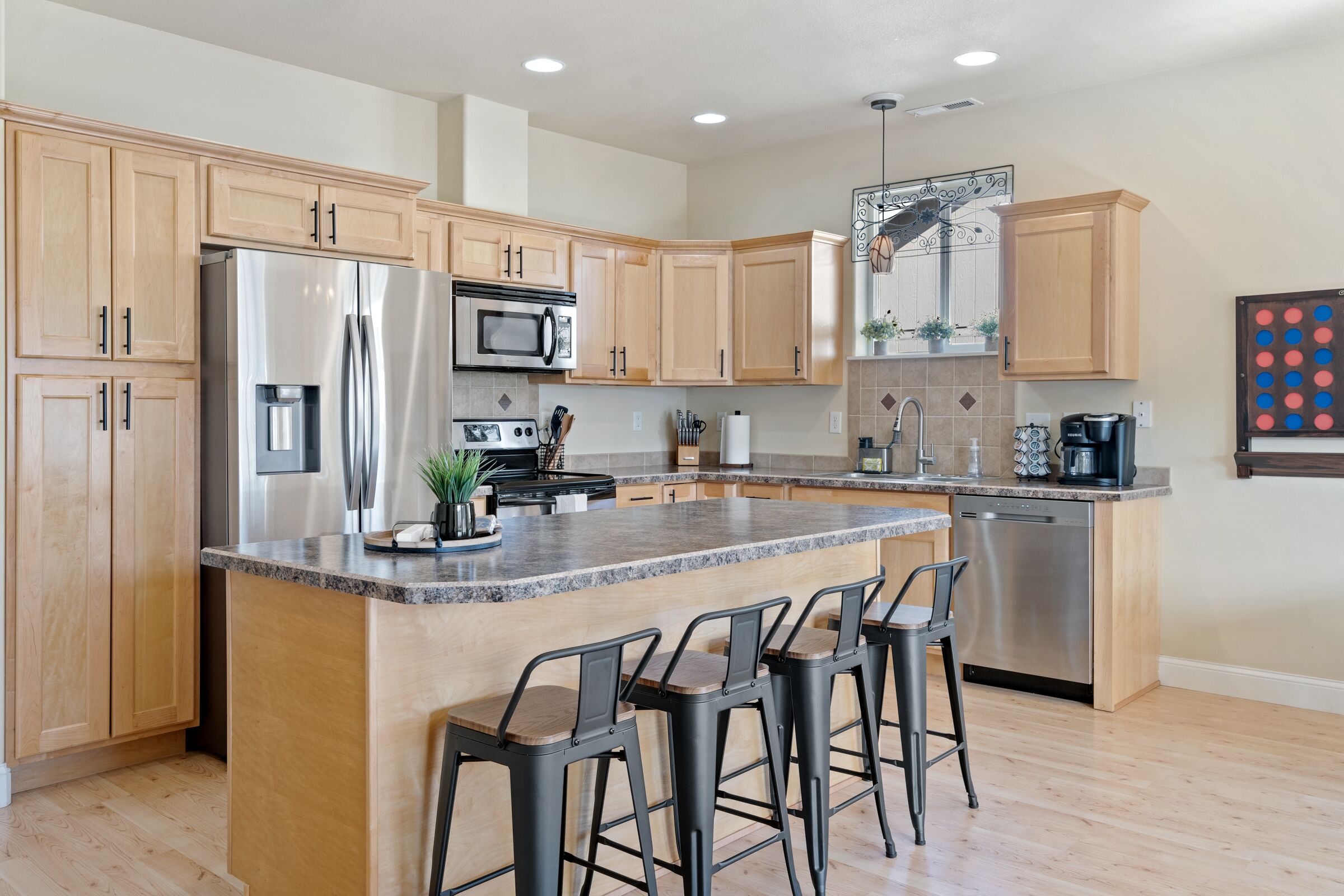 The convenient furniture throughout this home is brand new. Comfortable, high-end beds and pillows throughout, for a peaceful sleep while you enjoy your cozy stay. Perfect for a family, equipped with family items to make your stay more comfortable when traveling with the kiddos. We also offer a well-equipped kitchen to meet your needs during your stay.