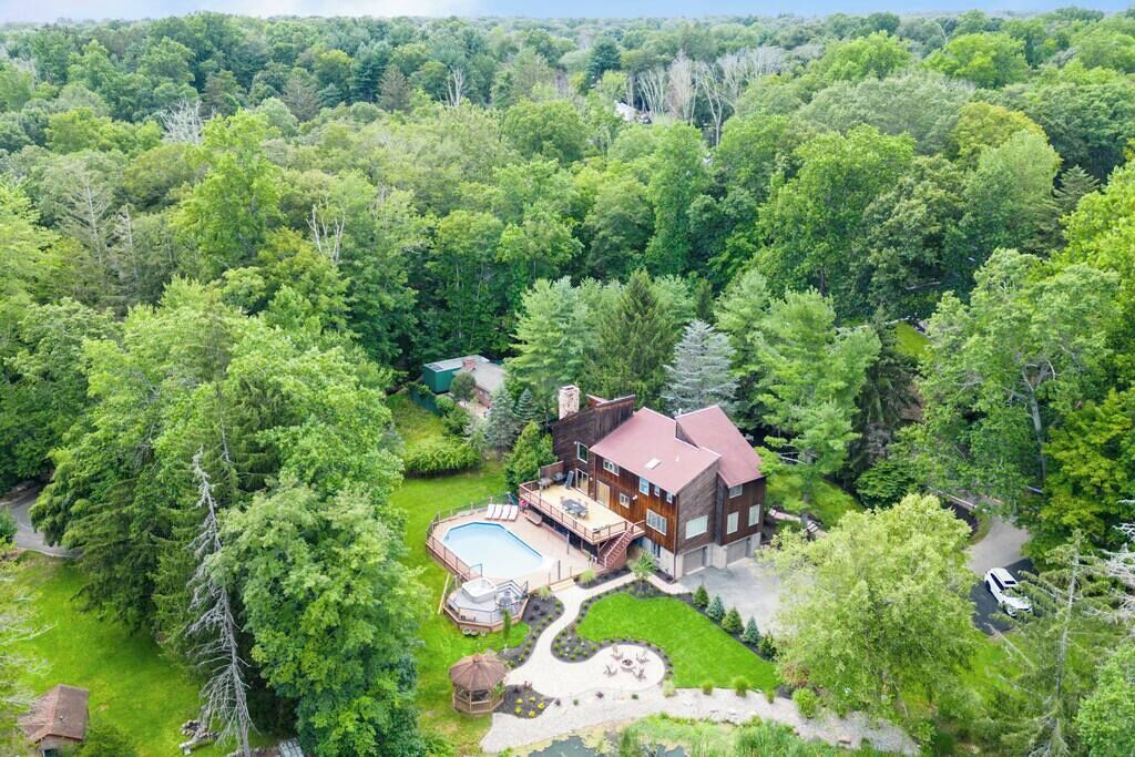 A tranquil oasis just an hour from NYC, this spacious, elegant home is set on a private, wooded lot with a huge backyard. Take a dip in the sparkling pool, fire up the grill, and dine al fresco on the patio, then gather around the fire pit surrounded by nature for the perfect escape from the day-to-day.