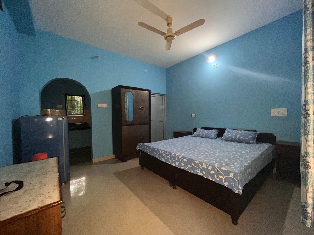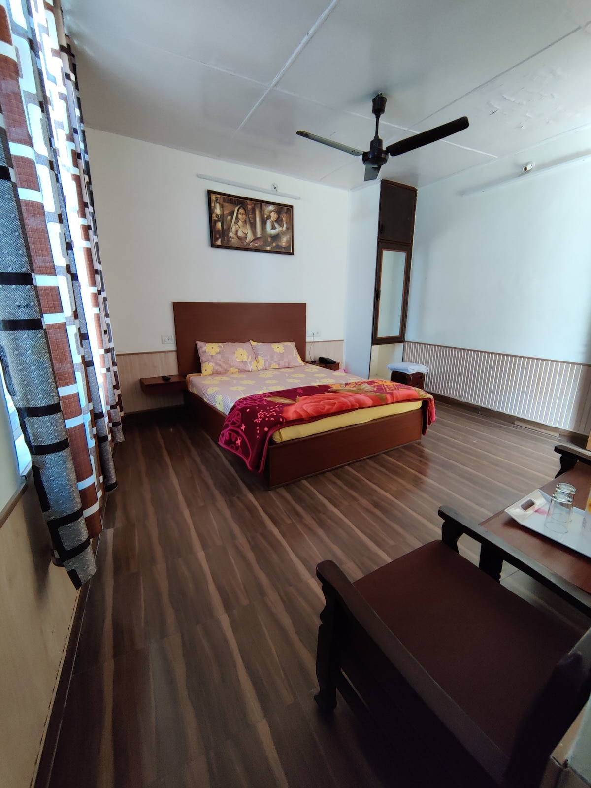 We offer high-speed Wi-Fi, reliable power backup, and a spacious, well-appointed Deluxe Room designed for your comfort. The room features a luxurious king-size bed, an attached large bathroom equipped with a geyser/water heater, and a private, fully-equipped alcove kitchen for a seamless stay.