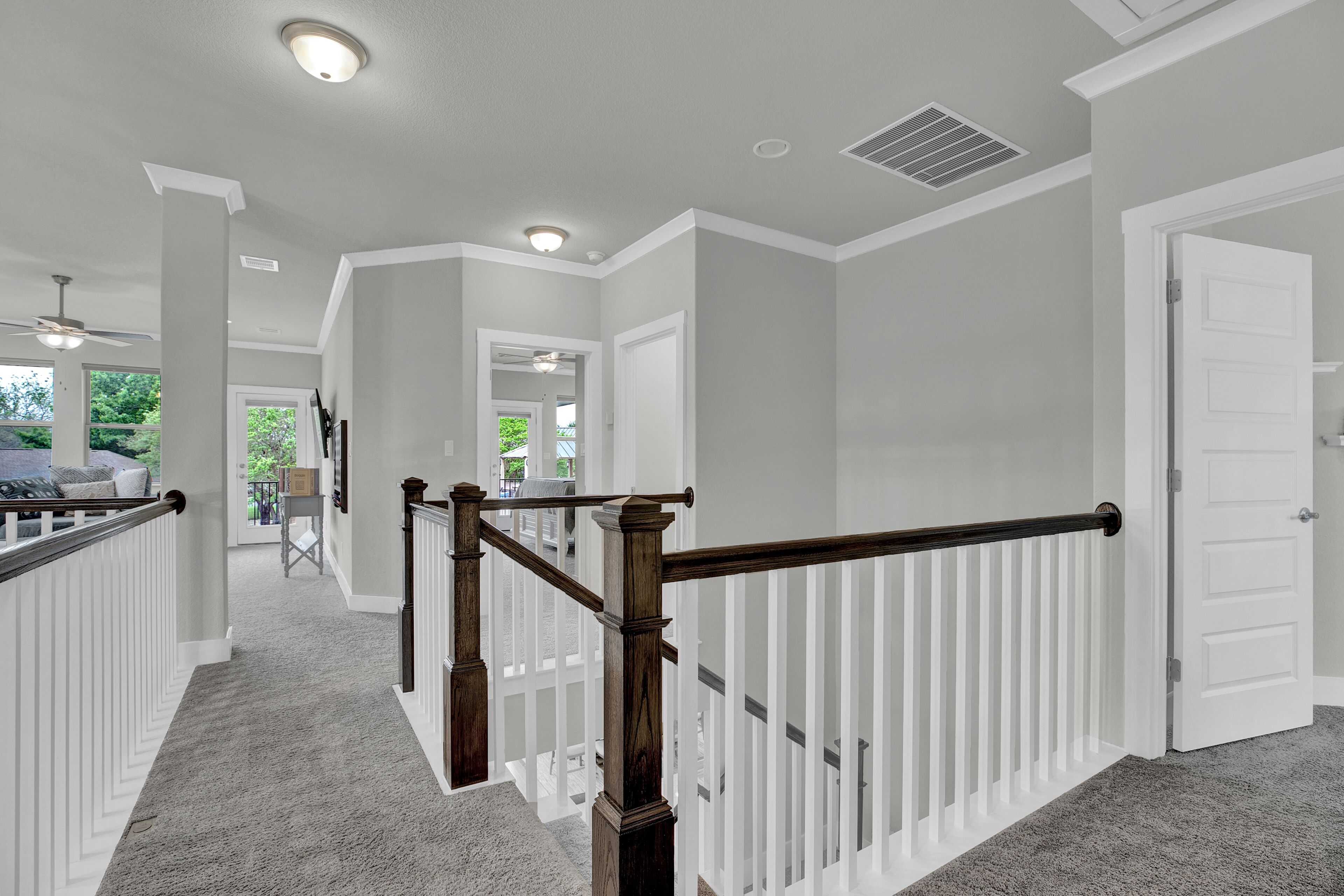 This unit is the secondary unit behind the main house. The unit is upstairs above the garage. Upon arrival, walk through the iron gate between the units and proceed up the stairs to your right.