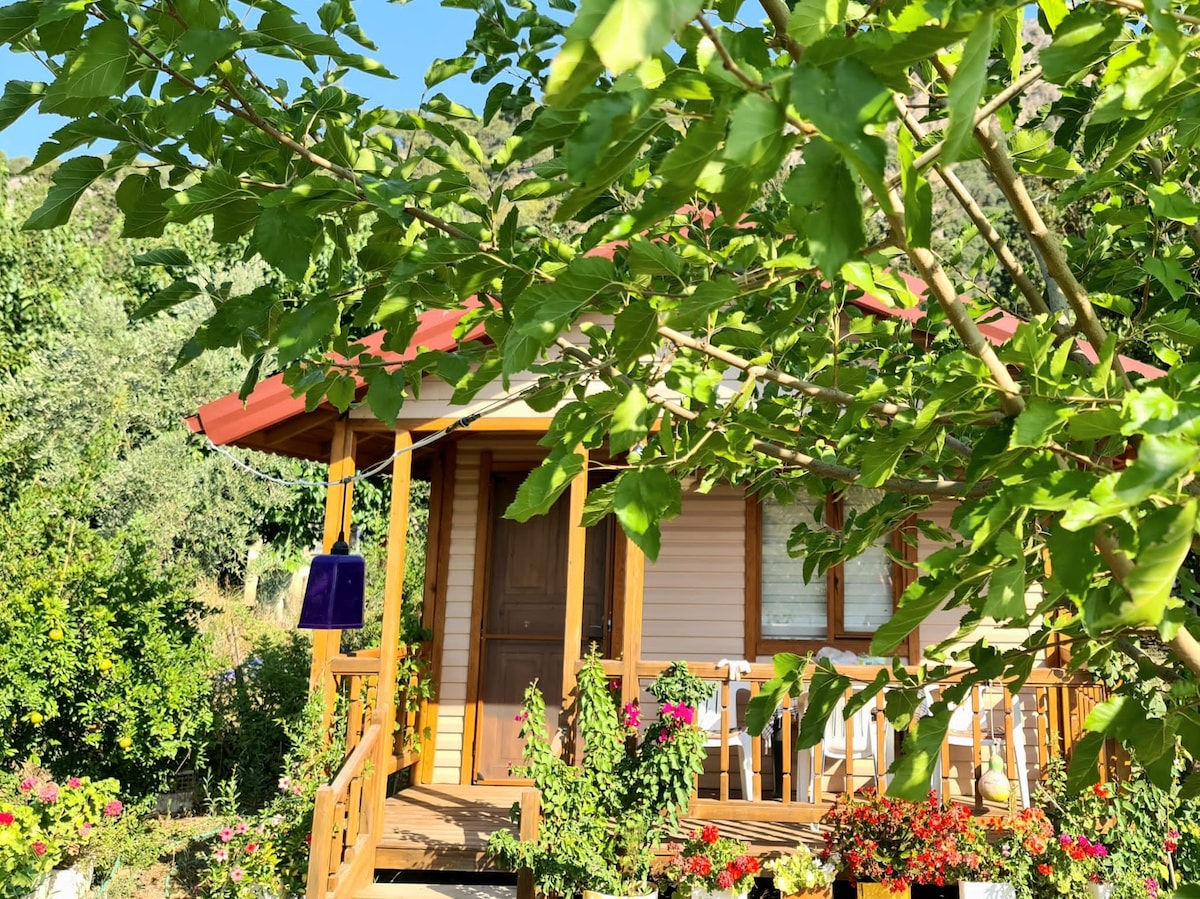 It is a garden with many trees that I can not count as being carefully selected seeds such as alakarya, lemon silk, avacado, fruit, Trabzon palm, lemon, grape, pomegranate, and for it, our handmade house made of stone and wood.