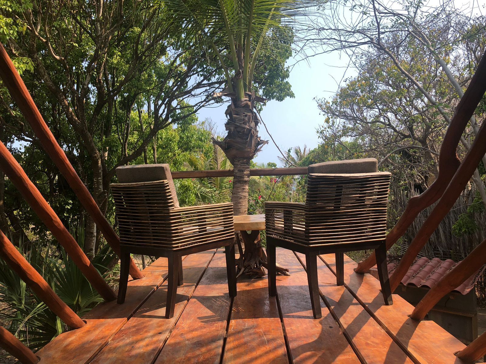 The room has a queen size bed with a mosquito net . Each room has its private terrace part with a hammock and with floors , you have a table to work in the room. We have Starlink internet.