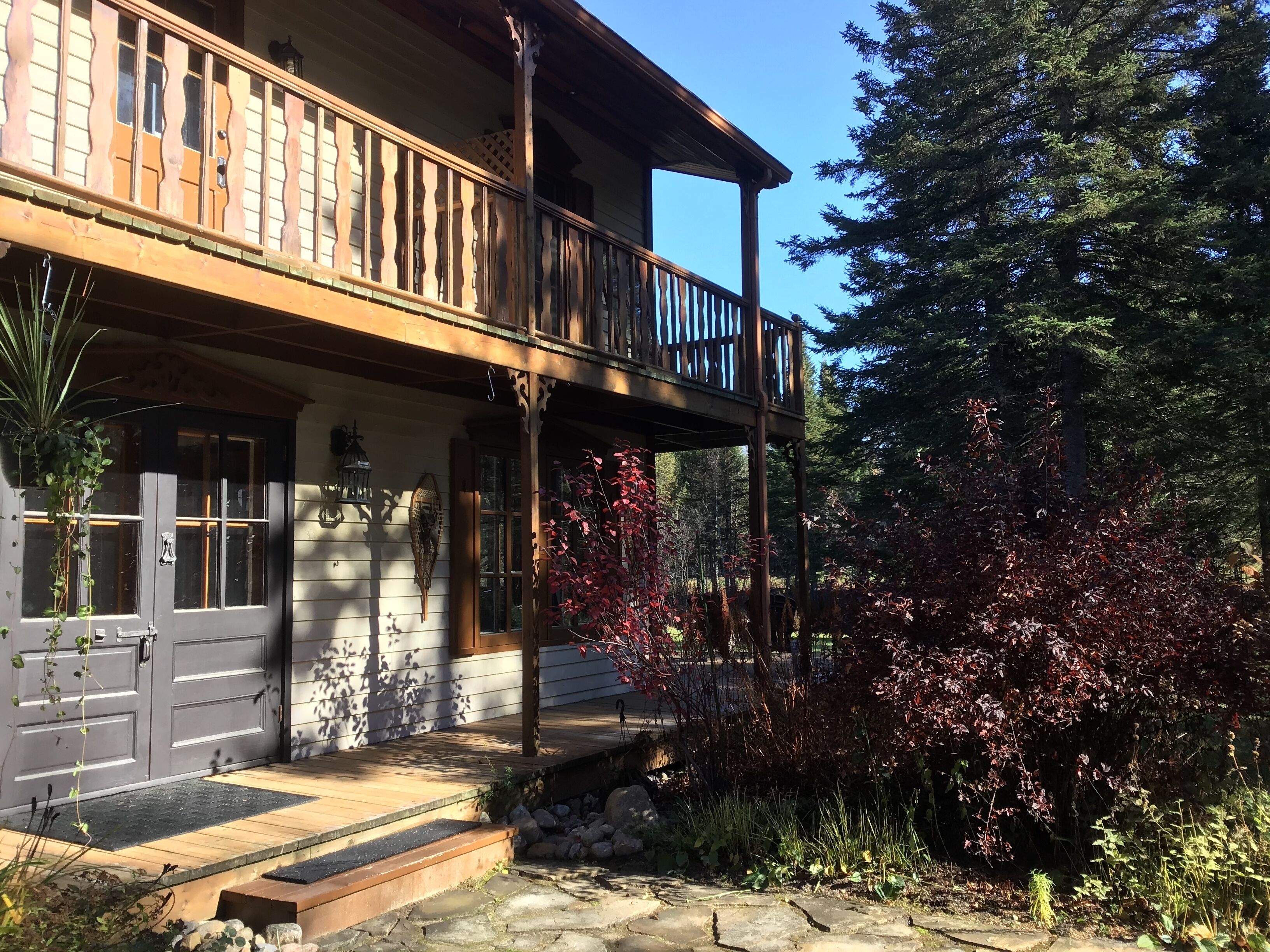 Lots of birds and wildflowers... In autumn the maple colors are enchanting! 15 minutes from Tremblant ski resort and 10 minutes from Mont-Blanc ski resort and 5 minutes from all shops. In the heart of nature and in the calm with only the murmur of the river that runs through the grounds.