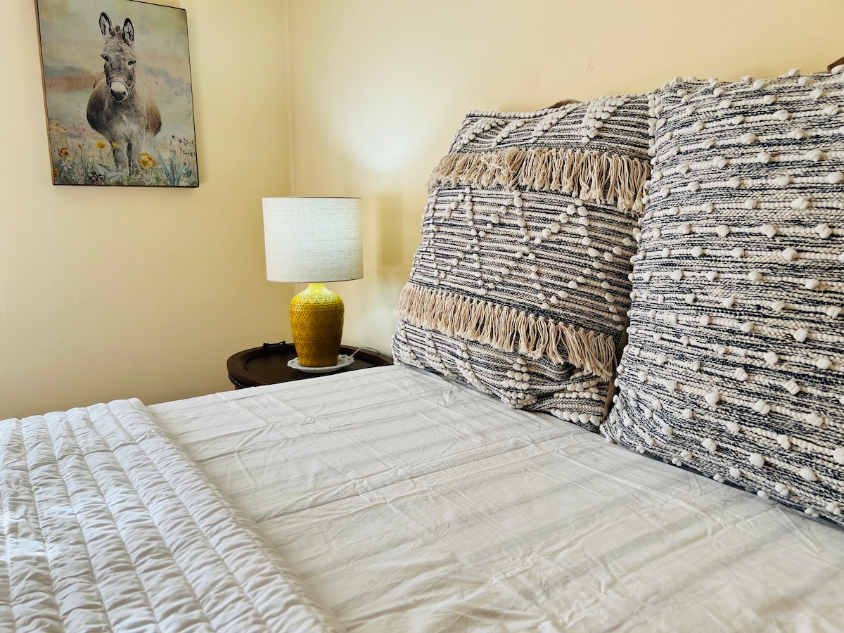Enjoy in the ultimate slumber party experience with our sturdy bunk beds, conveniently located in the hallway just across from the bathroom. Whether you're a kid or an adult seeking some personal space, these beds are perfect for a cozy and comfortable night's sleep. Once you sink into the softness of our sheets, you won't ever want to leave the luxurious comfort they provide.
